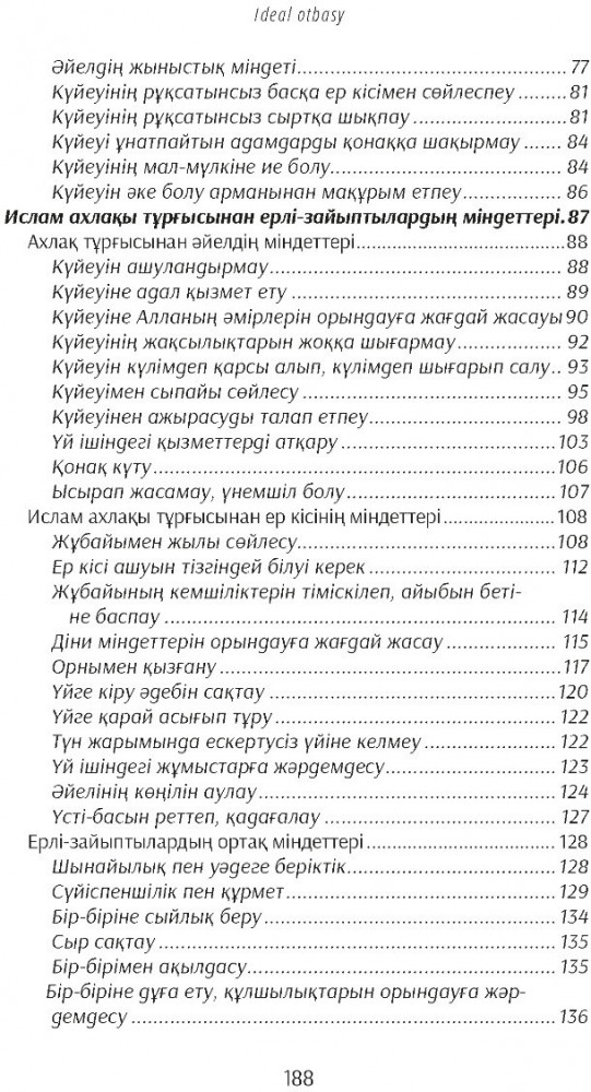 💳 Оплатить за товар можно при получении 🇰🇿 Есть бесплатная доставка по Казахстану от 1 дня 🎁 Копите бонусы с каждой покупки Серия: Отбасы және тәрбие Қолдарыңыздағы кітапта «Отбасын құру» деген ұғымның мәні түсіндіріліп, оған алдын-ала ішкі дайындық керектігі сөз болады. Өмірлік жар таңдаудың аят-хадистердегі бұлжымас өлшемдерін алдыңызға жайып салады. Ақ некенің маңызы, той өткізу, ер мен әйелдің міндеттері, отбасындағы түсіністік секілді ауқымды тақырыптардан бастап жай кезде көп елене бермейтін мәселелер турасында да кеңінен әңгіме өрбиді. Ерлі-зайыптылардың өзара сыйластығы мен жарастығын арттыруға берілген кеңестер де назардан тыс қалмаған. Еңбек барша оқырман қауымға арналған. |