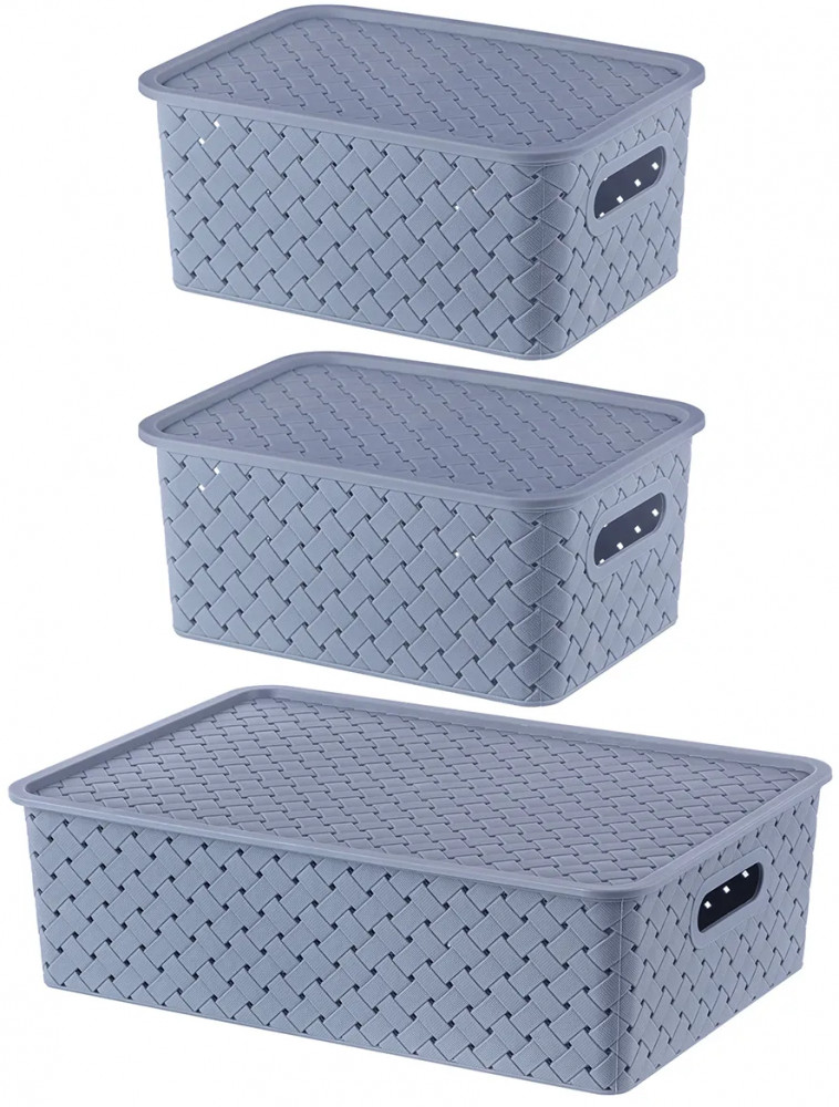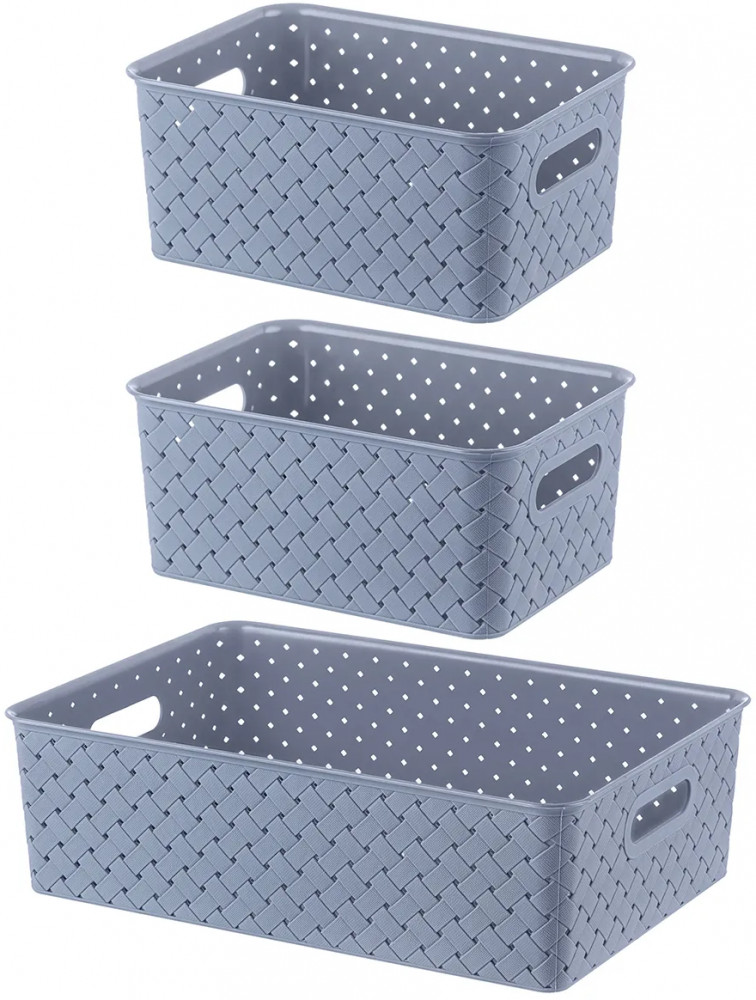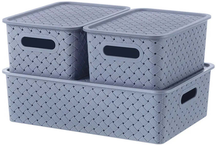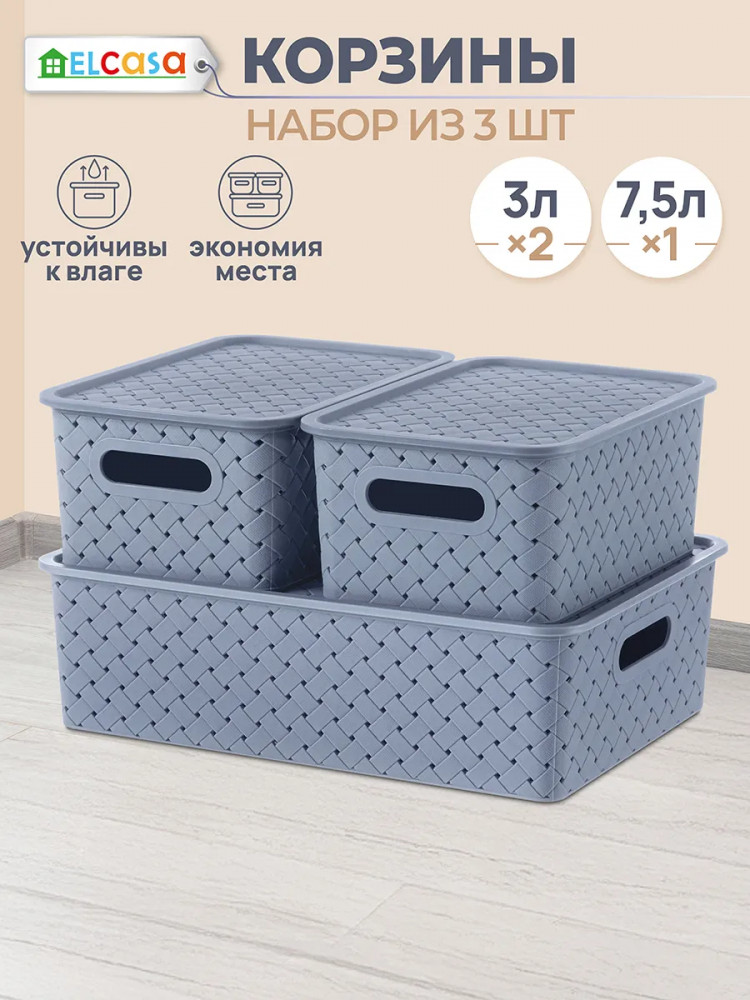 В состав набора El Casa входят 3 корзинки с крышками дымчато-синего цвета: