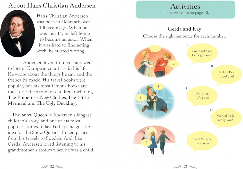 The Snow QueenВ данный момент этот товар отсутствует в продаже. Возможно, у нас найдется аналогичный или похожий товар здесь. The Snow Queen by Hans Christian Andersen, illustrated by Elena Selivanova, is part of the English Readers Level 2 series, recommended for children aged 6+. This beautifully illustrated book tells the classic story of brave Gerda, who sets off on a perilous journey to rescue her friend Kay from the icy palace of the Snow Queen. The edition includes a helpful word list, 5 pages of activities, and access to free online audio in both British and American English. The text is adapted to 800 headwords and contains a total of 2,126 words, making it perfect for young learners expanding their English vocabulary. |