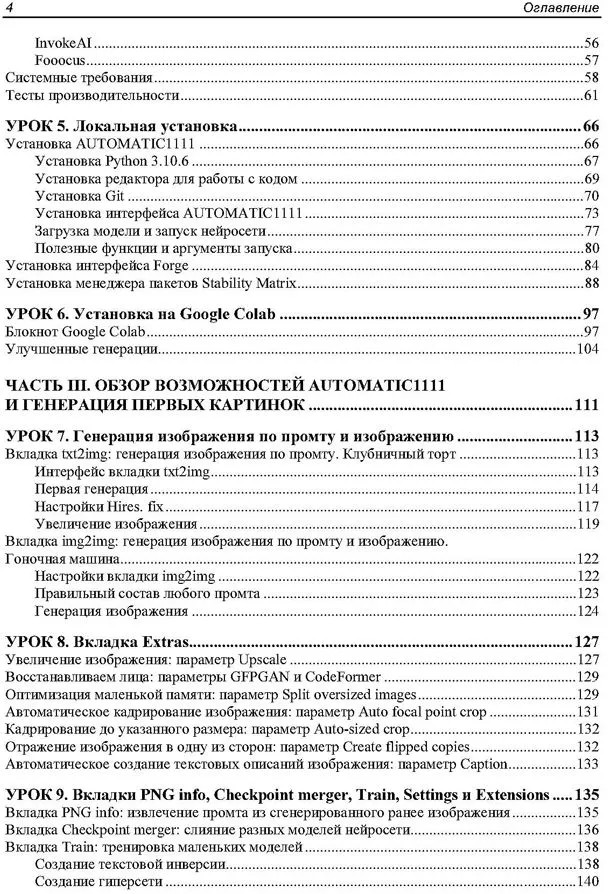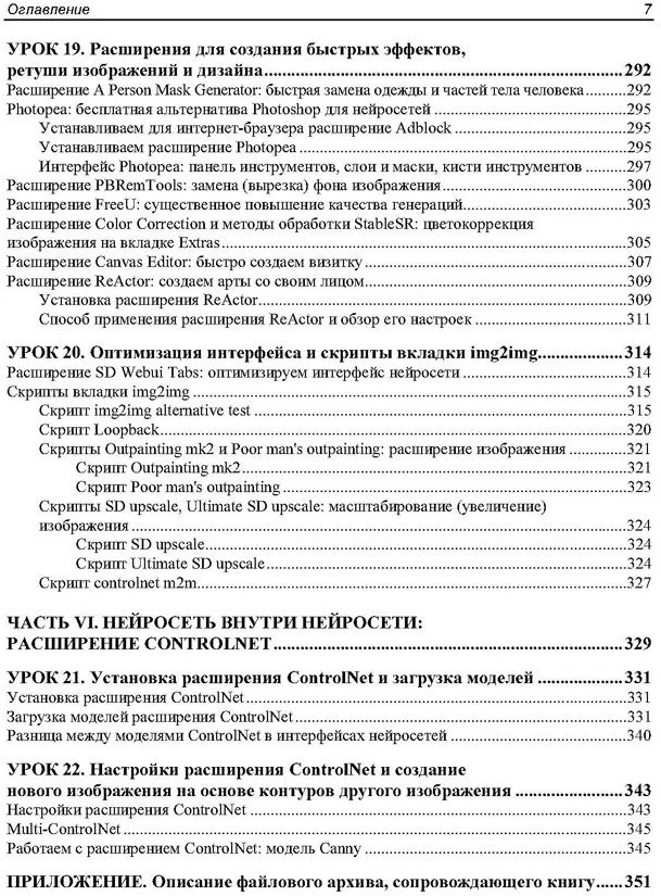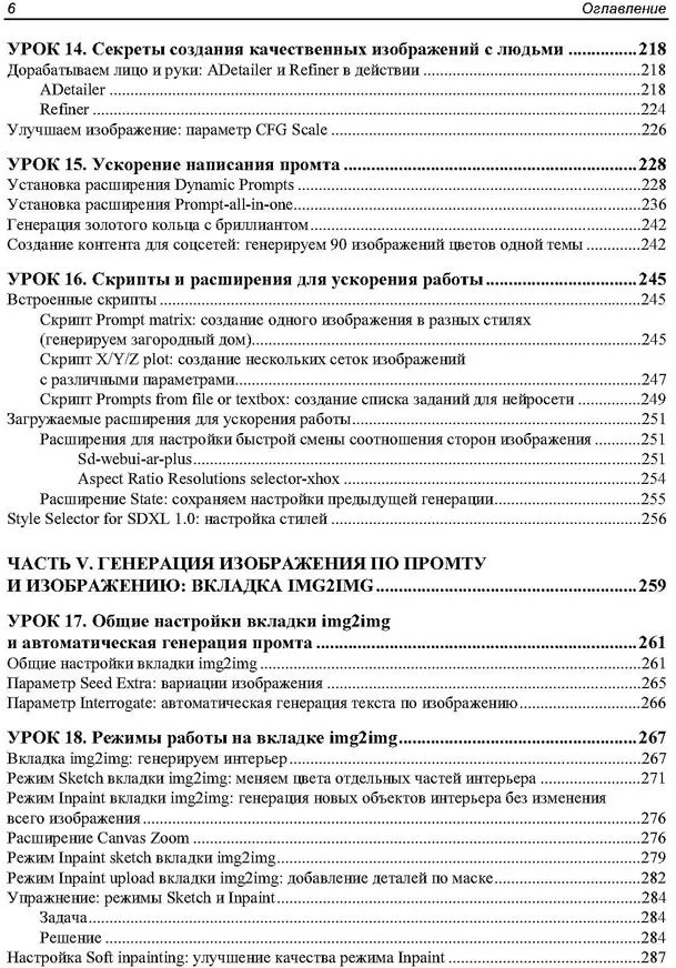 💳 Оплатить за товар можно при получении 🇰🇿 Есть бесплатная доставка по Казахстану от 1 дня 🎁 Копите бонусы с каждой покупки Серия: Для начинающих В книге представлено 22 проиллюстрированных урока по работе с нейросетью Stable Diffusion в интерфейсах AUTOMATIC1111 и Forge. Для лучшего усвоения материала разработаны сопровождающие книгу видеоуроки и сделан полный разбор всех моделей и препроцессоров ControlNet, доступный на электронном ресурсе Figma. Рассмотрены расширения ADetailer, Civitai Helper, State, A-person-maskgenerator, Dynamic Prompts, Prompt All-in-One, SD-WebUI-AR-Plus, Photopea, FreeU, Reactor и ControlNet. Описаны основные функции и настройки, приведены примеры применения для генерации изображений. Рассказано, как управлять стилем и композицией через промты, настроить модели и препроцессоры ControlNet, автоматизировать генерации серий изображений с помощью расширений и скриптов, создавать реалистичные лица и другие изображения, использовать продвинутые трюки по ретуши и постобработке, интегрировать WebUI AUTOMATIC1111 и Forge в рабочие проекты. |