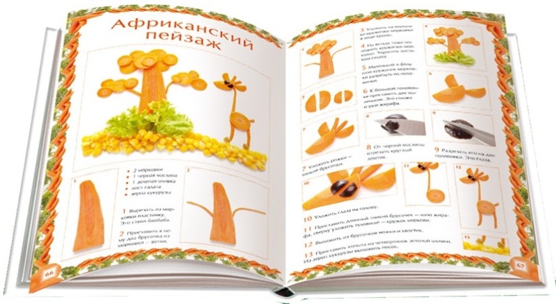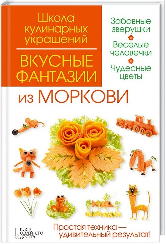 Вкусные фантазии из морковиСергей Борисович Кабаченко, Ирина Викторовна Степанова В данный момент этот товар отсутствует в продаже. Возможно, у нас найдется аналогичный или похожий товар здесь. Серия: Школа кулинарных украшений Новогодняя елочка и букет астр, смешной клоун и забавный пират, величественная роза, очаровательный пудель и веселый заяц — ваши родные и друзья будут в восторге! А дети с удовольствием примут участие в изготовлении эффектных цветов и милых фигурок — их выполнение не требует особых навыков. Оригинально украшенные блюда превратят даже самый обычный завтрак в настоящий праздник! Подробные инструкции и красочные фотографии помогут в работе. |
