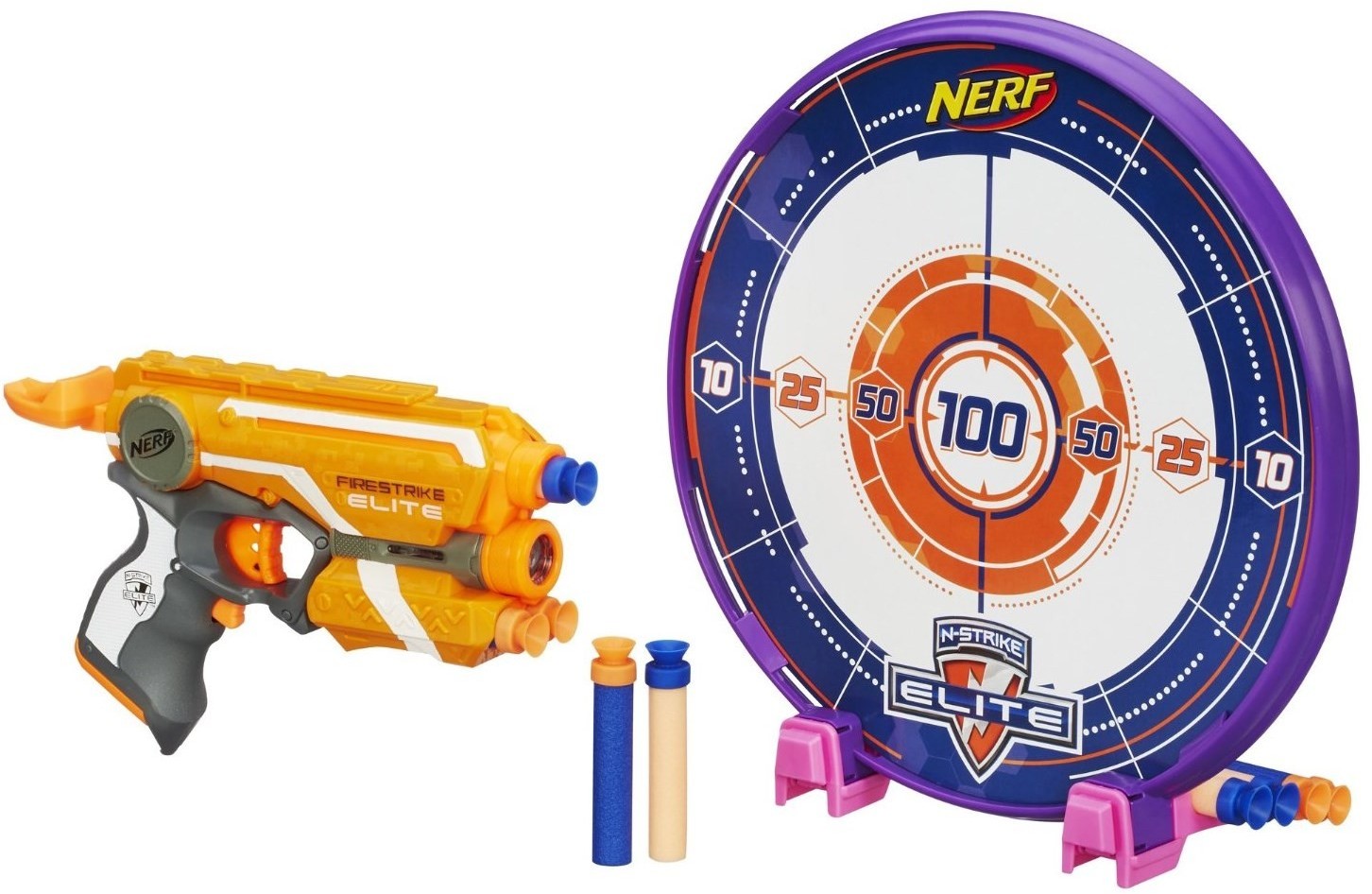 Nerf Бластер «Файрстрайк»В данный момент этот товар отсутствует в продаже. Возможно, у нас найдется аналогичный или похожий товар здесь. Серия: N-Strike Elite Бластер НЁРФ «Файрстрайк» с мишенью от компании Hasbro обязательно понравится активным мальчишкам, любящим проводить свое время за играми в войнушку! Бластер имеет лазерный прицел, для более точного ведения огня, а также отсек для двух дополнительных патронов. Стреляет он на расстояние до 20 метров Также в комплекте вы найдете специальную мишень и разноцветные уникальные патроны с присосками, которые позволят посоревноваться в точности с другом! |