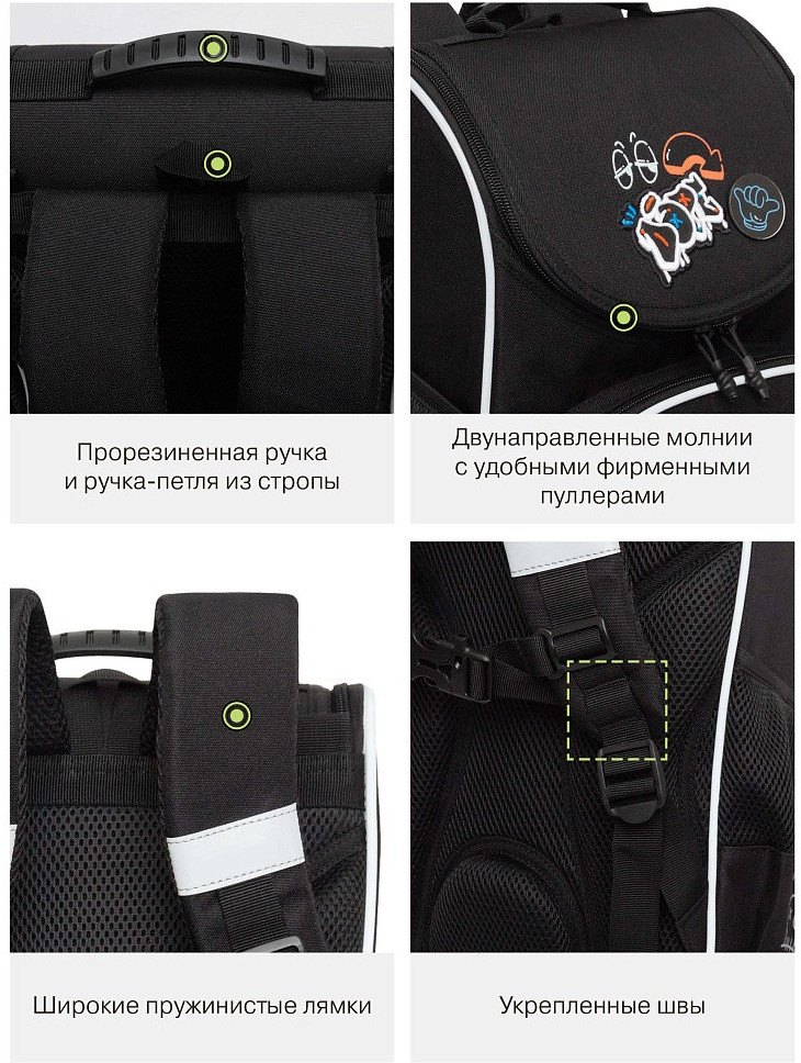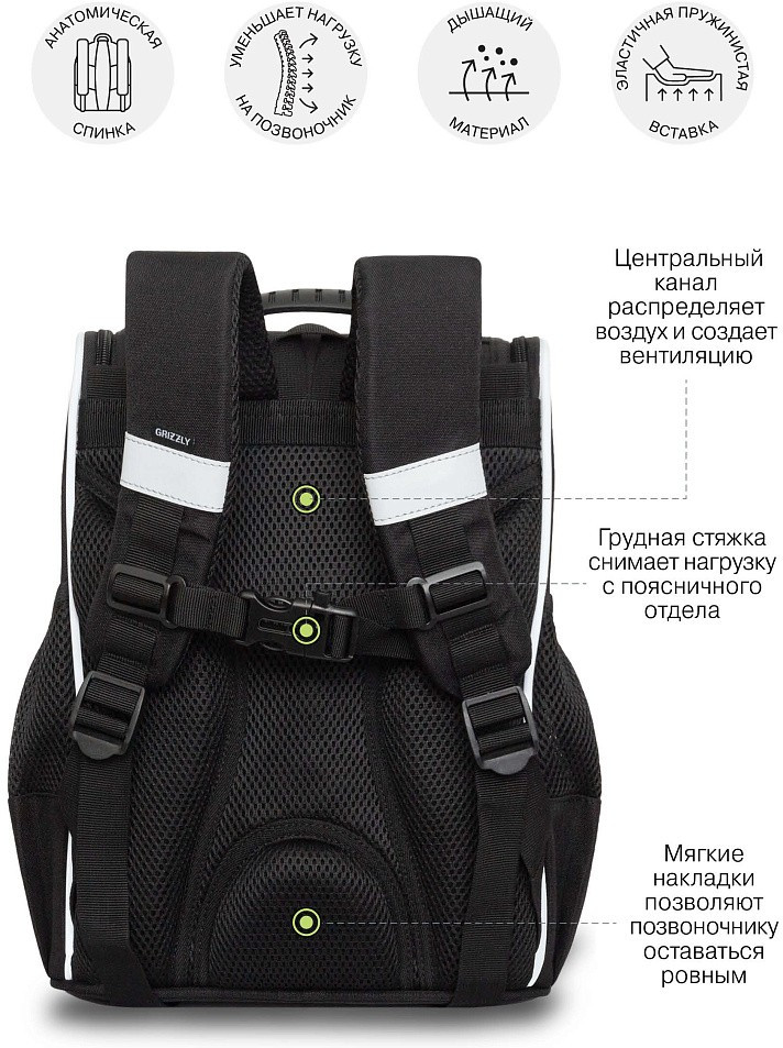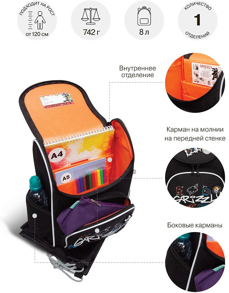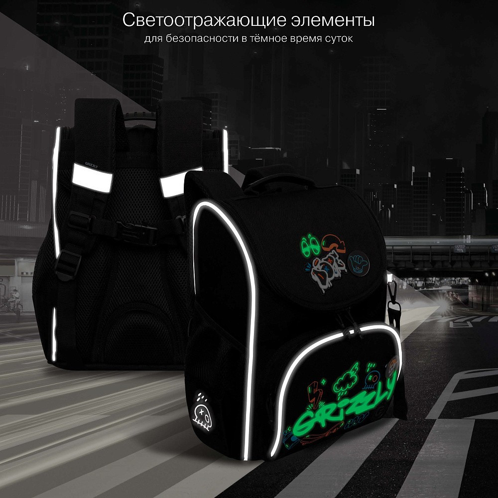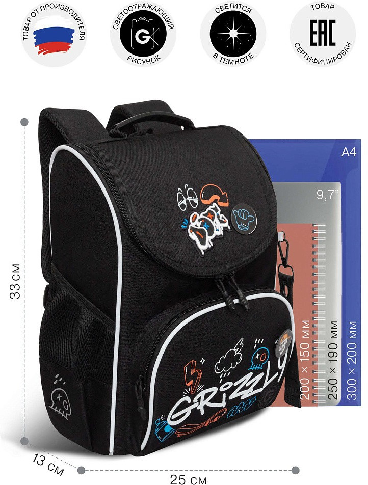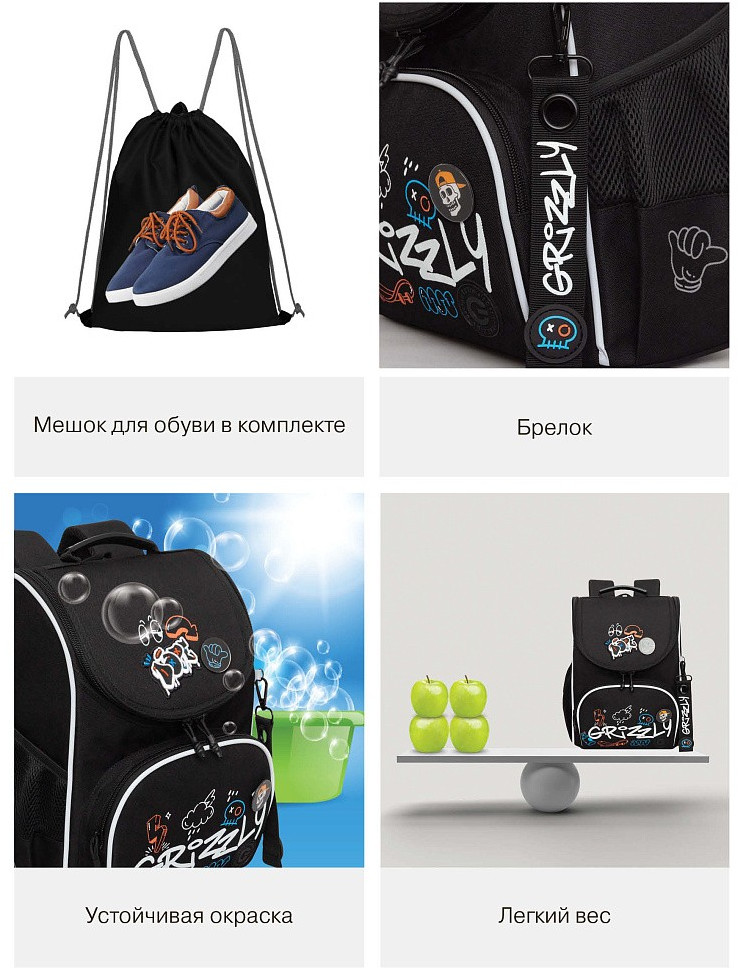 Grizzly Рюкзак школьный с мешком для обувиВ данный момент этот товар отсутствует в продаже. Возможно, у нас найдется аналогичный или похожий товар здесь. Серия: RAm Ищите компактный, но при этом вместительный ранец для первоклассника? Тогда Вам подойдет суперлегкий рюкзак Grizzly серии RAm для детей школьного возраста ростом от 120 до 130 см. Жесткая конструкция ранца, анатомическая спинка, вентилируемые лямки и грудная стяжка равномерно распределяют вес по спине ребенка. Жесткое дно и боковины не деформируются при нагрузке и создают надежную защиту содержимого. У школьного портфеля одно большое отделение с разделителем для учебных пособий формата А4, все лежит на своих местах. Рюкзак широко открывается, обеспечивая легкий доступ к содержимому. У него есть фронтальный карман на молнии для разных мелочей, удобная ручка и два вместительных боковых кармана. В комплекте к детской сумке прилагается мешок для обуви. Вечером ребенка точно заметят водители, т.к. со всех сторон есть отражатели. За счет водо- и грязеотталкивающей пропитки ранец долго остается как новый. Если он все же чем-то испачкался, мы рекомендуем ручную стирку в холодной воде. |