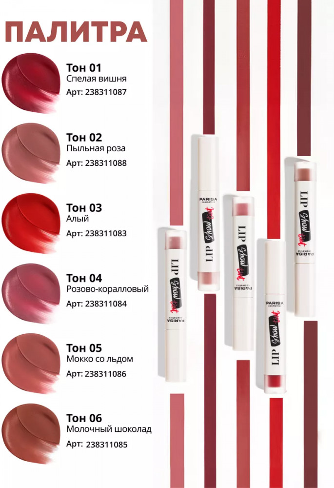 Aqua, Octyidodecanol, Glycerin, Trimethylsiloxyphenyl Dimethicone, Diisostearyl Malate, Hydrogenated Polyisobutene, Phenyl Trimethicone, Polysobare 60, Methylpropanediol, Polyglyceryl-10 Myristate, Sorbitan Stearate, Ethylcellulose, Phenoxyethanol, Polyacrylamide, Hydroxyethyl Acrylate / Sodium Aclryloyldimethyl Taurate Copolymer, Sucrose Cocoate, C13-14 lsoparaffin, Caprylyl Glycol, Chlorphenesin, Propylene Glycol, Disodium Edta, Propanediol, Laureth-7, Ethylhexylglycerin, Trehalose, Sorbitan Isostearate, Sodium Hyaluronate, Sodium Polyglutamate, Hydroxvacetophenone: 1,2-hexanediol, Undaria Pinnatifida Extract, Fructooligosaccharides, Chondrus Crispus, Titanium Dioxide, Iron Oxide Red, Iron Oxide Black, D&C Red 7 Ca Lake, FD &C Yellow 6, D&C Red 33, FD & C Blue 1.
