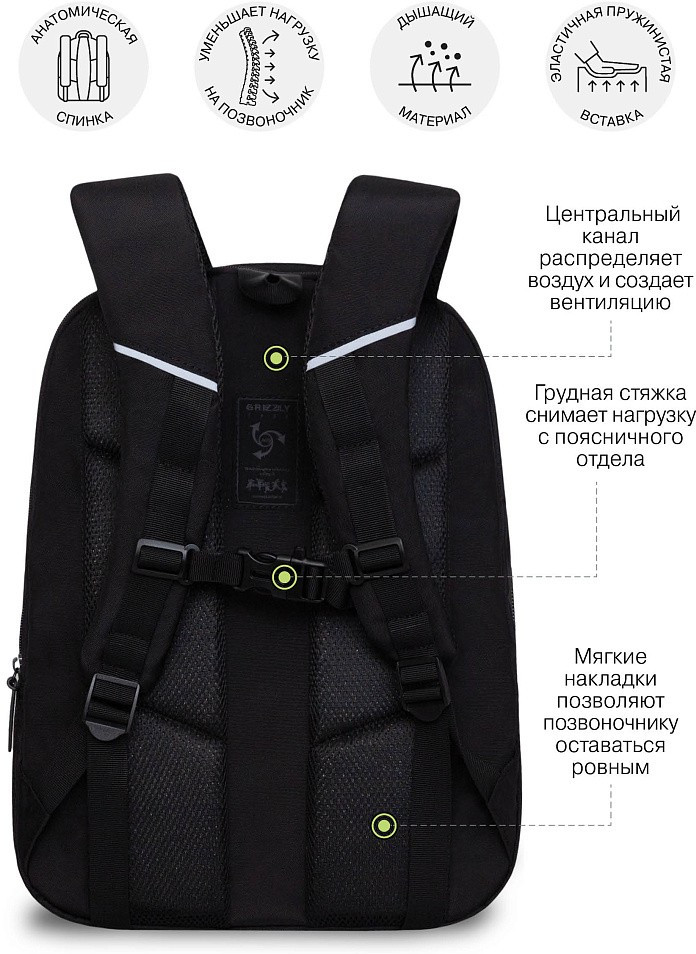 Этот стильный молодежный рюкзак Grizzly — идеальное решение для активных пользователей, студентов и просто любителей комфорта и удобства. Он был создан с учетом всех потребностей современных молодежи, сочетая в себе функциональность и модный дизайн. Отдельное отделение для ноутбука защитит его от повреждений. Два вместительных отделения позволяют организовать пространство для книг, аксессуаров и личных вещей, вмещают документы формата А4.