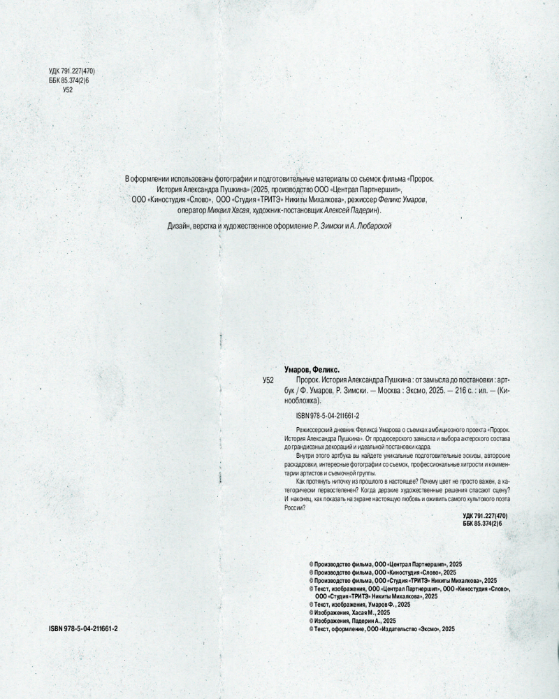 Артбук «Пророк. История Александра Пушкина: от замысла до постановки»Феликс Ринатович Умаров, Р. Зимски -20% +118