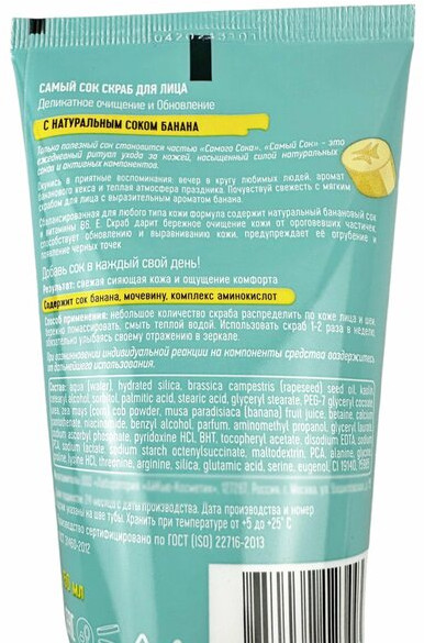 Самый сок Скраб для лица с натуральным соком банана «Деликатное очищение и обновление»