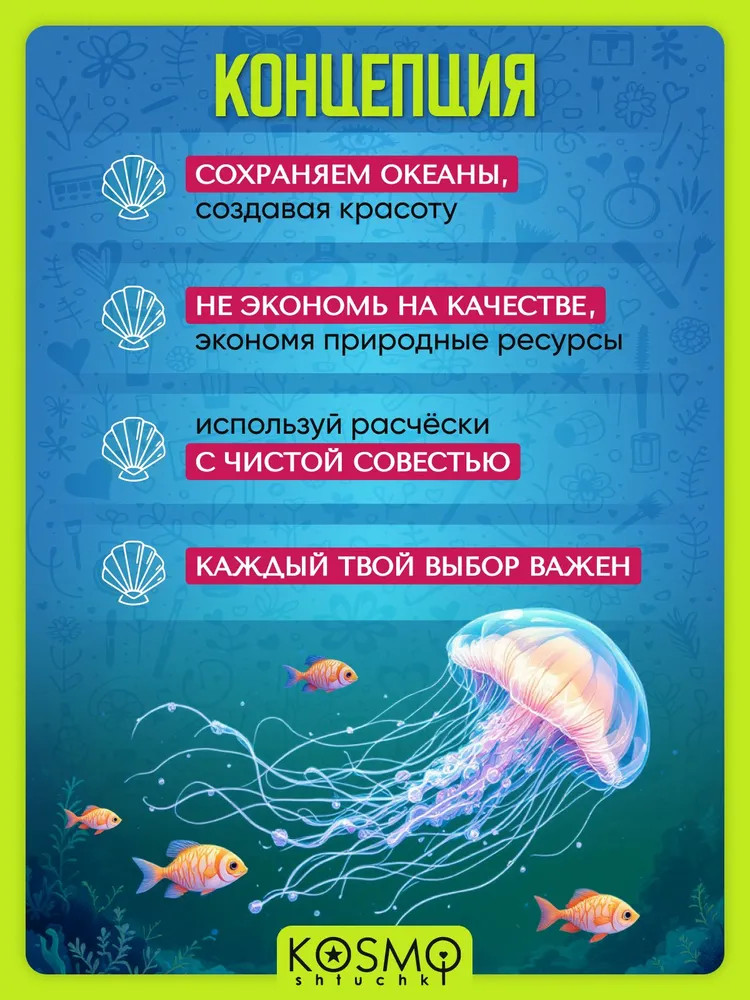 | «KosmoShtuchki» — это не только качество, но и доступность, и стиль. Миссия бренда заключается в том, чтобы женщины выглядели красиво снаружи и чувствовали себя также хорошо внутри. На сегодняшний день в ассортимент бренда «KosmoShtuchki» входят спонжи для нанесения макияжа, широкая линейка косметичек, ватные палочки и ЭКО-расчески. |