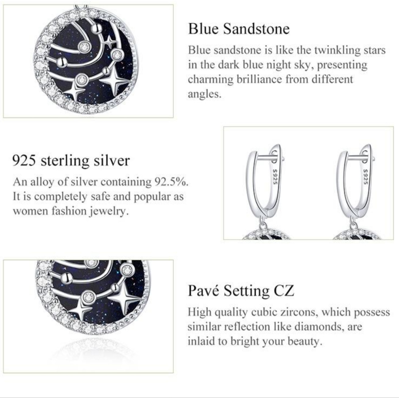 Bamoer Серьги женские «Звёздная ночь»