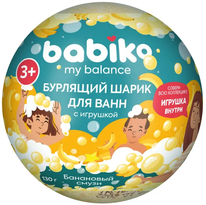 Babiko Шар бурлящий для ванны с игрушкой «Банановый смузи»