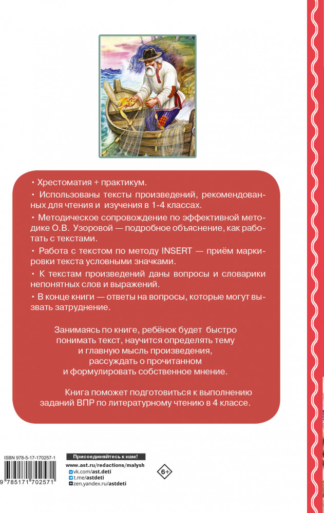 💳 Оплатить за товар можно при получении 🇰🇿 Есть бесплатная доставка по Казахстану от 1 дня 🎁 Копите бонусы с каждой покупки Серия: Академия начального образования Книга сочетает в себе хрестоматию и практикум. Кроме текста художественных произведений в книге дано полное методическое сопровождение, где детально объясняется, как ребёнок должен работать с текстом. В конце книги размещены ответы на вопросы, которые могут вызвать затруднения. |