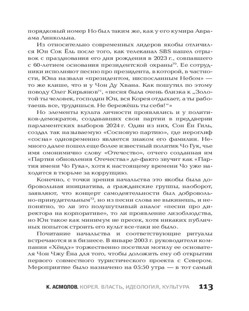 Серия: Экономические миры К.В. Асмолов — российский востоковед, кандидат исторических наук, ведущий научный сотрудник Института Китая и современной Азии РАН, один из наиболее известных корееведов Рунета, популяризатор культуры Кореи, ведет тематический блог в «Живом журнале» и телеграм-канал «KoreaMeow». Труды Асмолова ценны тем, что сочетают академический анализ с непосредственными наблюдениями человека, побывавшего по обе стороны 38-й параллели.