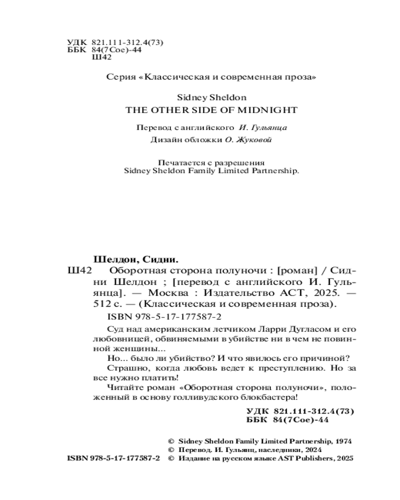 💳 Оплатить за товар можно при получении 🇰🇿 Есть бесплатная доставка по Казахстану от 1 дня 🎁 Копите бонусы с каждой покупки Серия: Классическая и современная проза (нов) Суд над американским летчиком Ларри Дугласом и его любовницей, обвиняемыми в убийстве ни в чем не повинной женщины... Но... было ли убийство? И что явилось его причиной? Страшно, когда любовь ведет к преступлению. Но за все нужно платить! Читайте роман «Оборотная сторона полуночи», положенный в основу голливудского блокбастера! |