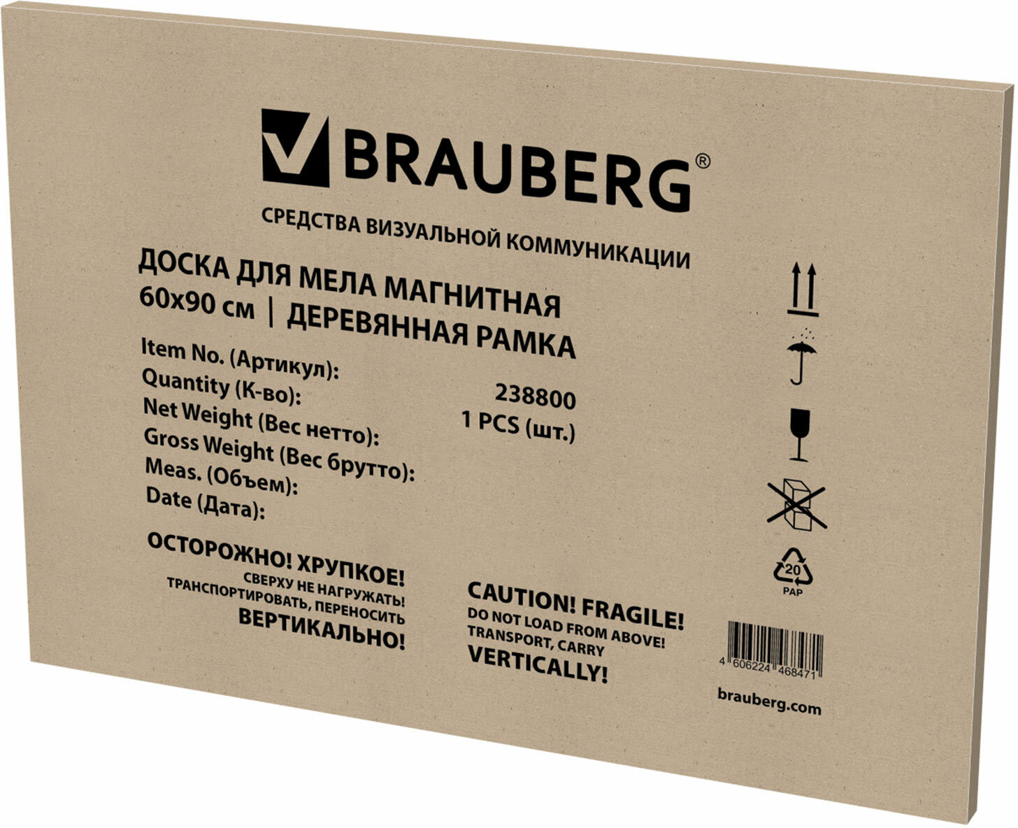 Размер доски — 60×90 см. Есть возможность горизонтального и вертикального крепления. Набор креплений для доски в комплекте. Надежная упаковка — термоусадочная пленка и гофрированный короб с усиленными прокладками. Приобретите магнитную доску для мела Brauberg и повысьте эффективность своей работы! Улучшите командное взаимодействие, облегчите процесс принятия решений и организуйте свое рабочее пространство.