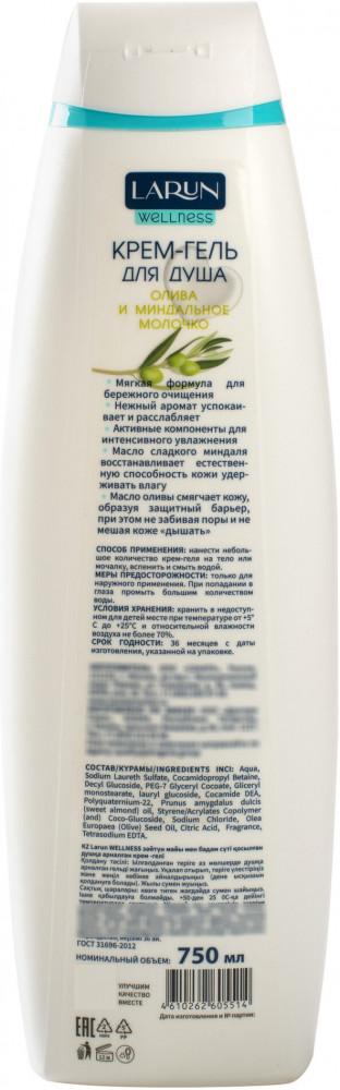 Larun Крем-гель для душа «Олива и миндальное молочко»