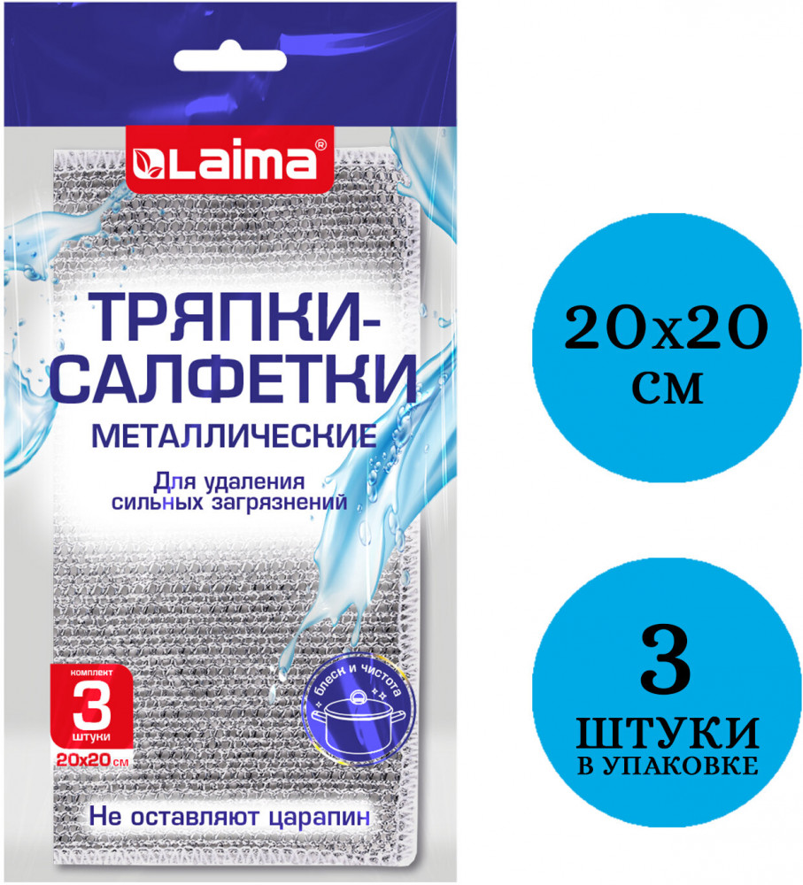 Laima Набор тряпок-салфеток для мытья посуды «Металлический эффект»-30% +13