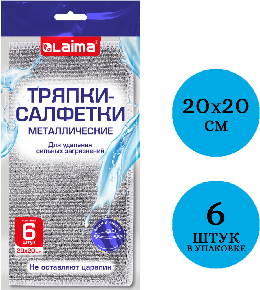 Laima Набор тряпок-салфеток для мытья посуды «Металлический эффект»-20% +8