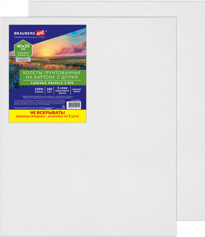 Грунтованные холсты на картоне Brauberg Art «Classic» используются для работы масляными, темперными и акриловыми красками. Предназначены как для начинающих художников, учеников и студентов художественных школ, так и для профессионалов. Прочная поверхность холста выдерживает множество слоев краски и воздействие разбавителей, хорошо переносит изменения влажности и температуры. Грунтованное мелкозернистое полотно из хлопка плотностью 280 г/м2 наклеено на основу из плотного картона. Холст на картоне легче и меньше по сравнению с холстами на подрамнике, тем самым он очень удобен для транспортировки. Идеальное решение для художников, которые посещают выездные художественные уроки по рисованию с натуры, пишут этюды и эскизы.