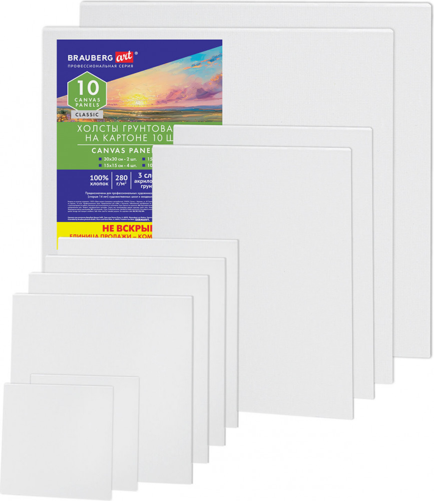 💳 Оплатить за товар можно при получении 🇰🇿 Есть бесплатная доставка по Казахстану от 1 дня 🎁 Копите бонусы с каждой покупки Серия: Art Classic Грунтованные холсты на картоне Brauberg Art «Classic» используются для работы масляными, темперными и акриловыми красками. Предназначены как для начинающих художников, учеников и студентов художественных школ, так и для профессионалов. Прочная поверхность холста выдерживает множество слоев краски и воздействие разбавителей, хорошо переносит изменения влажности и температуры. Грунтованное мелкозернистое полотно из хлопка плотностью 280 г/м2 наклеено на основу из плотного картона. Холст на картоне легче и меньше по сравнению с холстами на подрамнике, тем самым он очень удобен для транспортировки. Идеальное решение для художников, которые посещают выездные художественные уроки по рисованию с натуры, пишут этюды и эскизы. |
