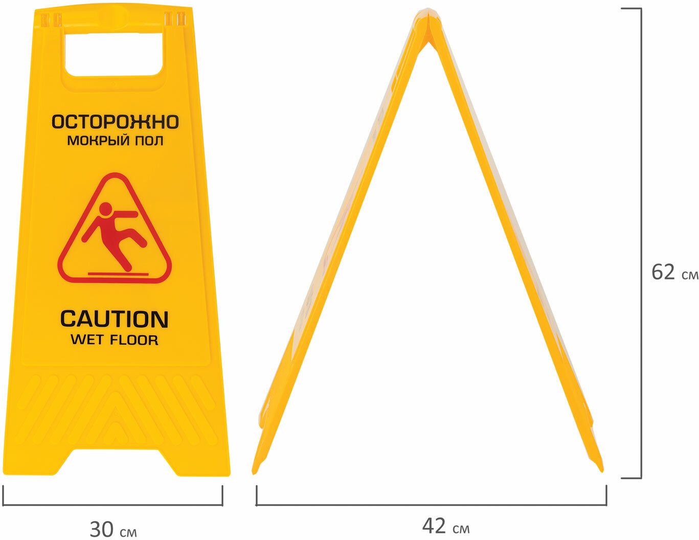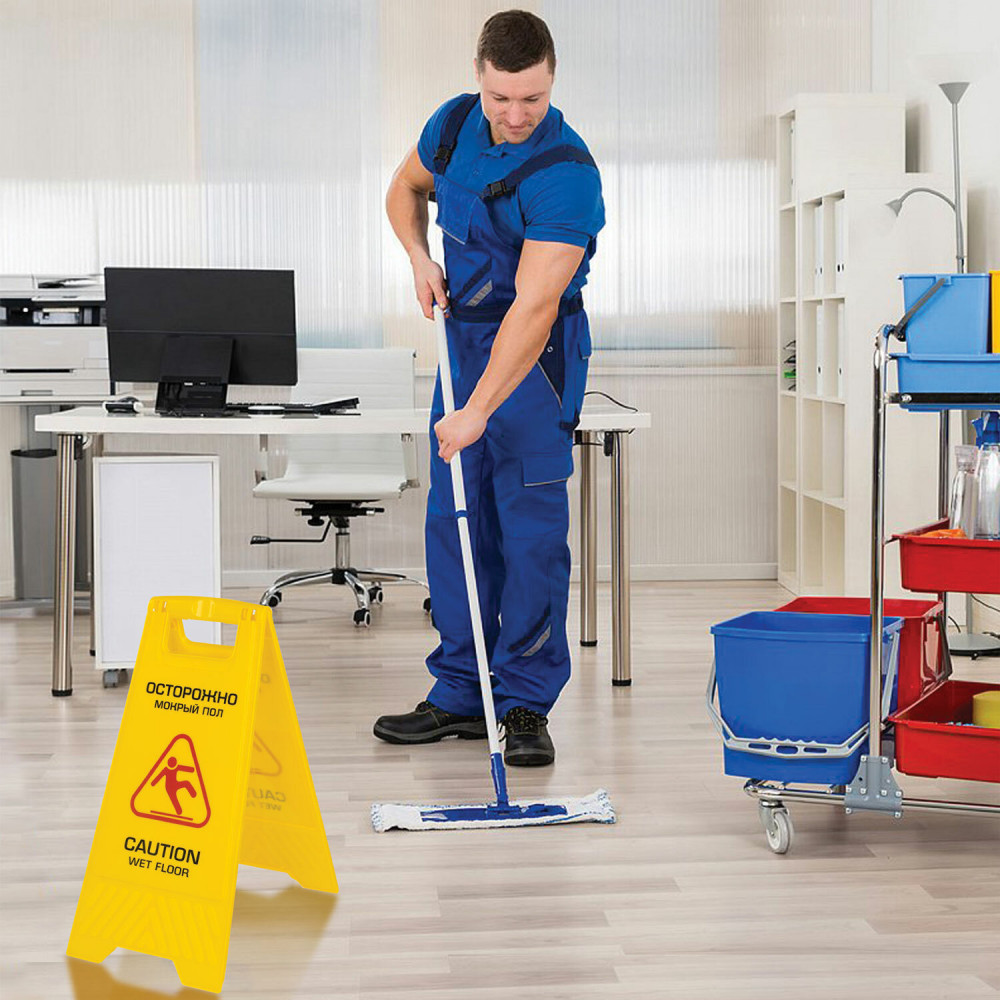 💳 Оплатить за товар можно при получении 🇰🇿 Есть бесплатная доставка по Казахстану от 1 дня 🎁 Копите бонусы с каждой покупки Серия: Professional Знак предупреждающий «Осторожно! Мокрый пол!» Laima Professional предназначен для привлечения внимания и обеспечения безопасности в местах массового скопления людей. Выставляется при проведении влажной уборки. Знак выполнен из ударопрочного пластика, легко складывается и раскладывается. В сложенном виде имеет размер 62×30 см. Текст на русском и английском языках. Яркий желтый цвет позволяет увидеть знак на большом расстоянии. Установка сигнальных предупредительных табличек избавит от проблем и судебных исков, связанных с получением травм из-за скользкого пола. Выберите необходимый знак и обезопасьте своё помещение уже сегодня! |