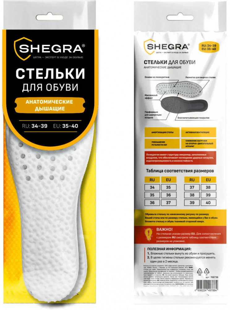 Спешите приобрести стельки для обуви Shegra анатомические дышащие по выгодной цене!