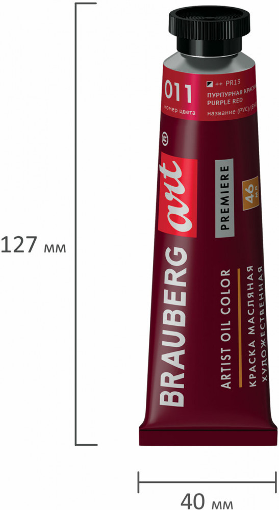 Brauberg Краска масляная художественная, 011 пурпурный красный