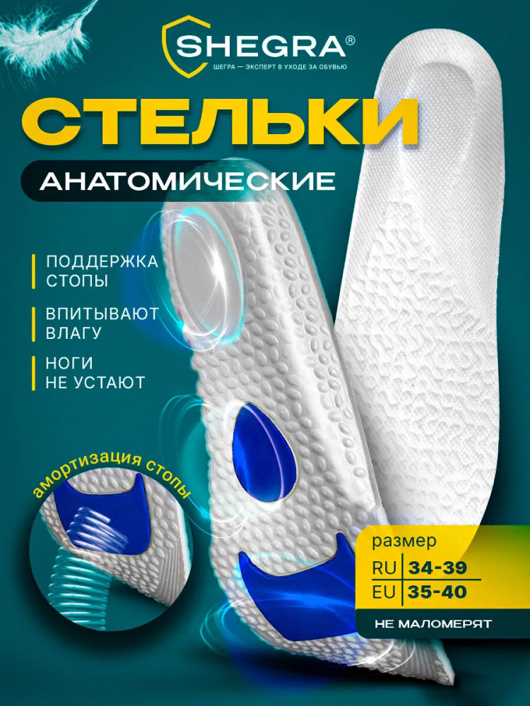 Спешите приобрести стельки для обуви Shegra с амортизирующими вставками по выгодной цене!