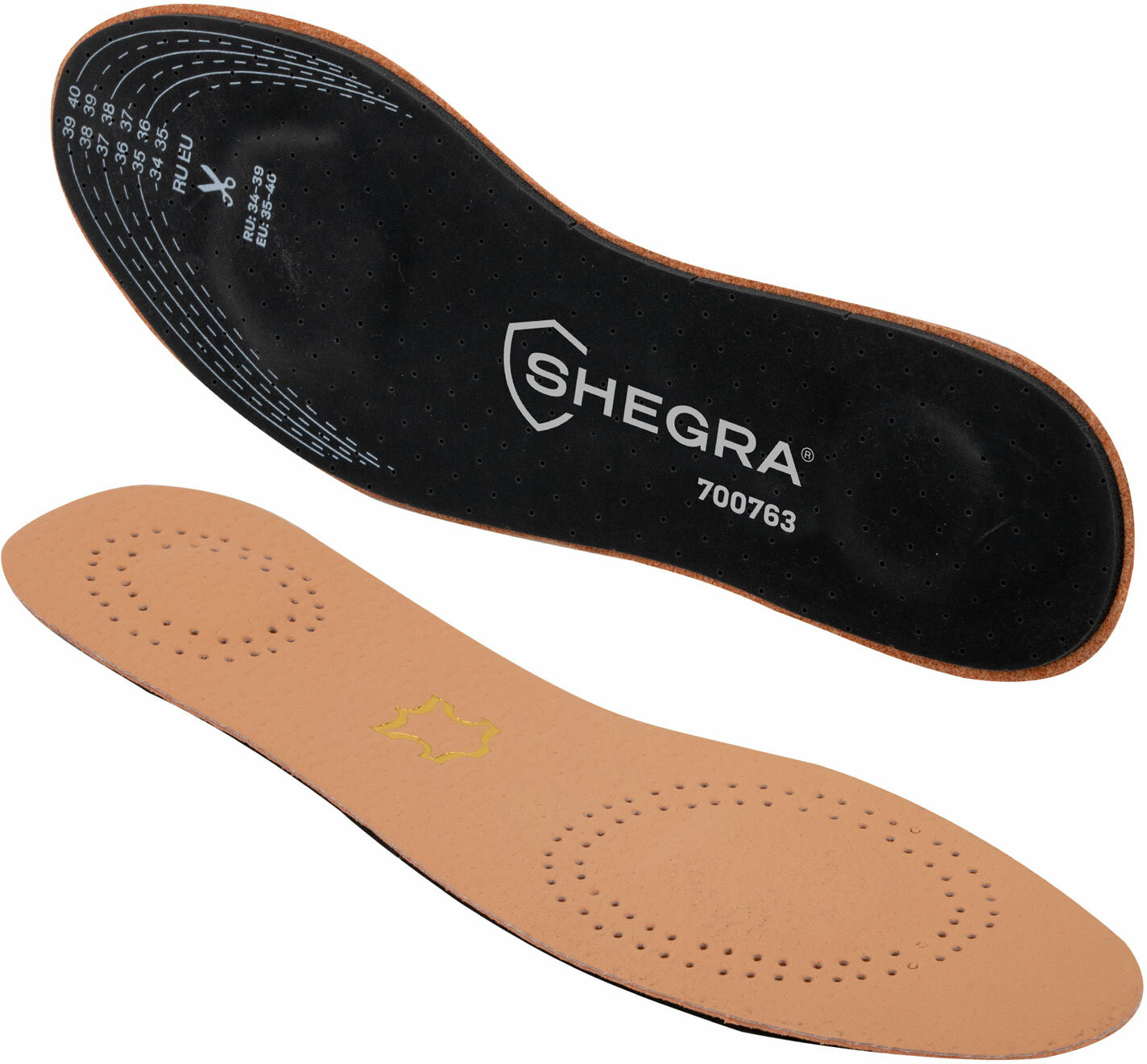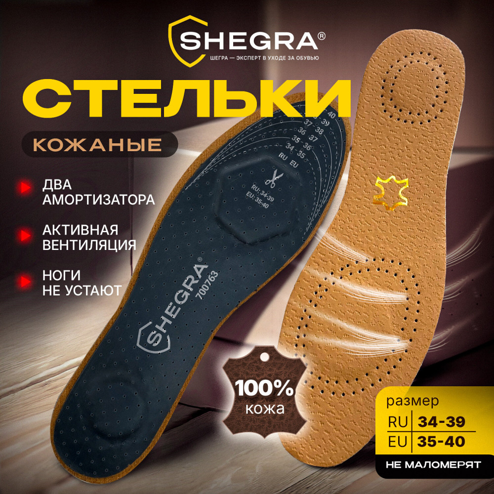 Спешите приобрести стельки для обуви Shegra из натуральной кожи с двумя амортизаторами по выгодной цене!