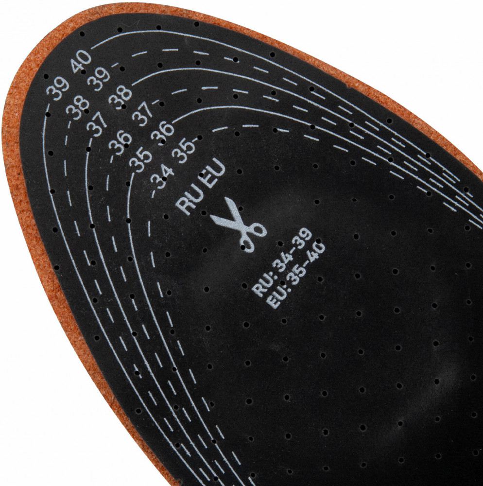 Основа стелек выполнена из латексной пены с добавлением активированного угля, который предотвращает появление и размножение бактерий, надолго нейтрализует неприятные запахи. Латексная пена снижает и поглощает ударные нагрузки при ходьбе. Супинатор поперечного свода стопы уменьшает нагрузку на передний отдел стопы, а пяточный амортизатор снижает и поглощает ударную нагрузку на пятку. Поверхность стелек выполнена из натуральной кожи, которая обеспечивает воздухопроницаемость, сохраняя свежесть в обуви. Перфорация способствует дополнительной вентиляции, создавая оптимальный микроклимат.
