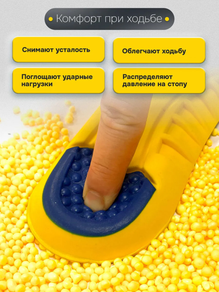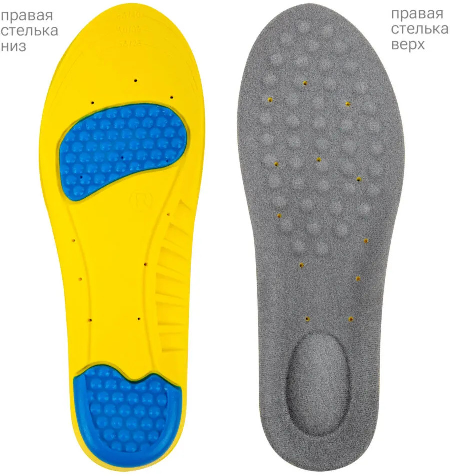 Стельки выполнены из инновационного полиуретана, который имеет структуру микропор, заполненных воздухом, что обеспечивает поглощение ударных нагрузок, водонепроницаемость и износостойкость. Пяточный амортизатор и амортизатор передней части стопы снижают и поглощают ударную нагрузку при ходьбе. Супинатор продольного свода стопы создает комфорт при движении, снижается нагрузка на опорно-двигательный аппарат, создается массажный эффект и ноги не устают. Стельки оснащены влаговпитывающим покрытием, которое впитывает влагу, что способствует нормализации микроклимата у вас в обуви.