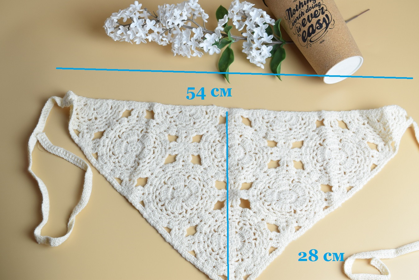 Преимущество летней косынки-банданы в том, что она эффектно подчеркивает стиль как женщин, так и девочек. Особенно, когда вещи гармонично сочетаются между собой. Особенно изящны и удобны муслиновые ажурные косынки-банданы на резинке. Поверьте, они будут практичны и актуальны всегда. Косынка-бандана заменит вам ободок для волос, платок на голову, повязку для занятия спортом, укроет голову от солнца и защитит от ветра. Косынка-платок из акрила не соскальзывает с головы, что очень удобно для активных игр или работы в саду.
