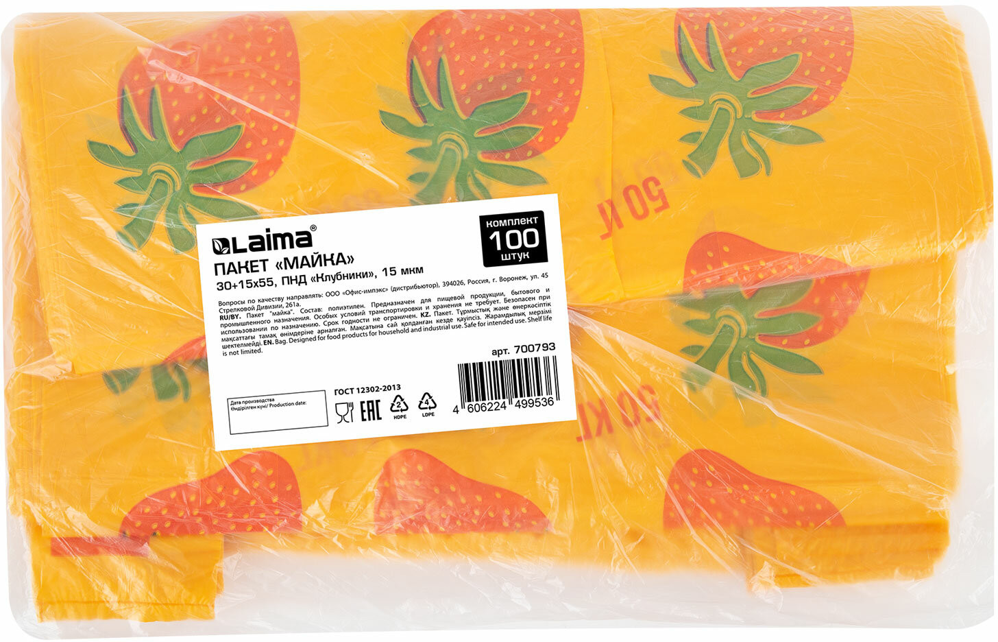 Laima Пакет-майка в рулоне «Клубники»
