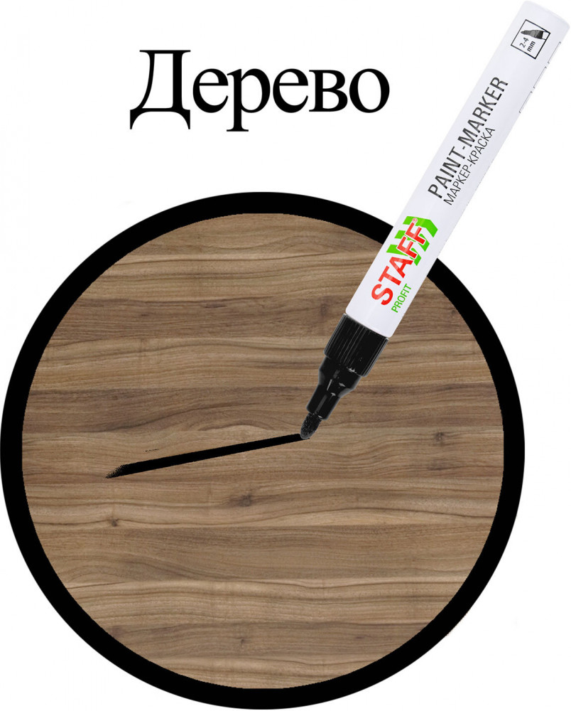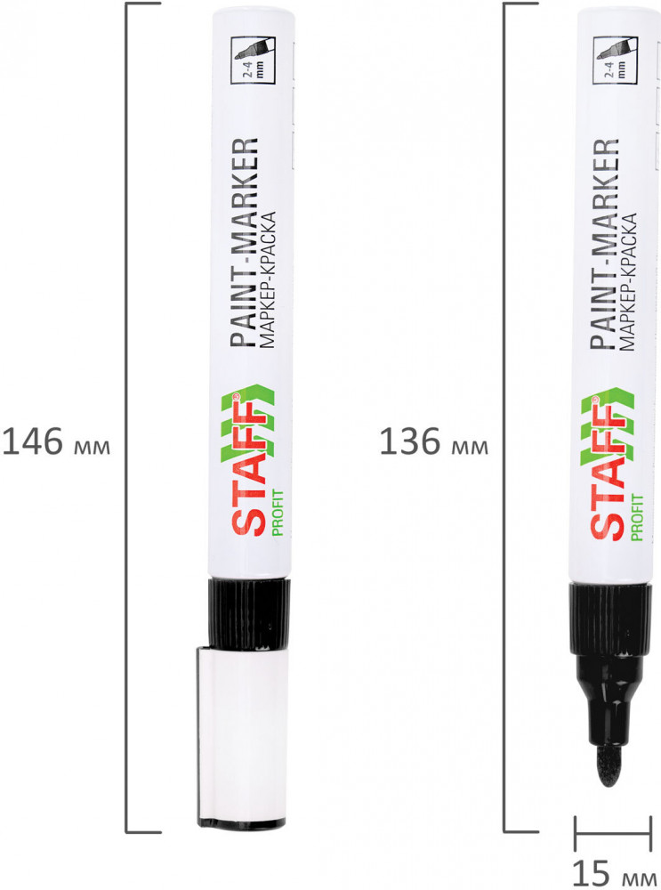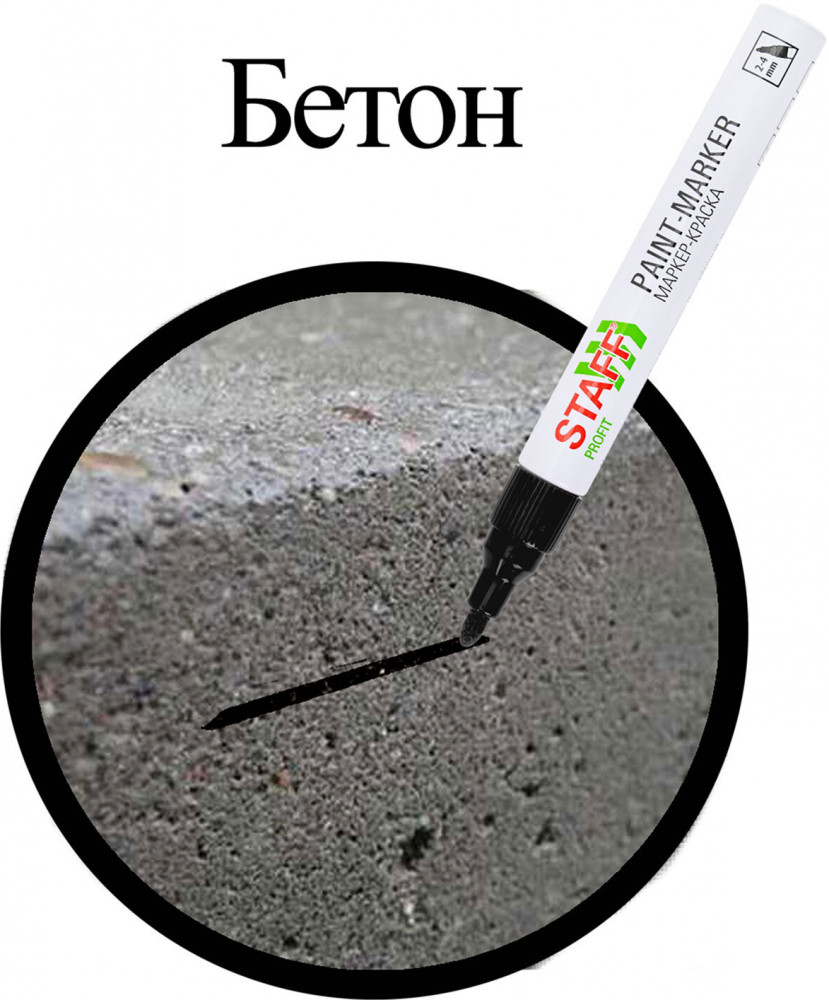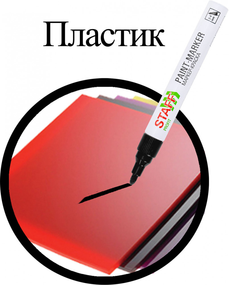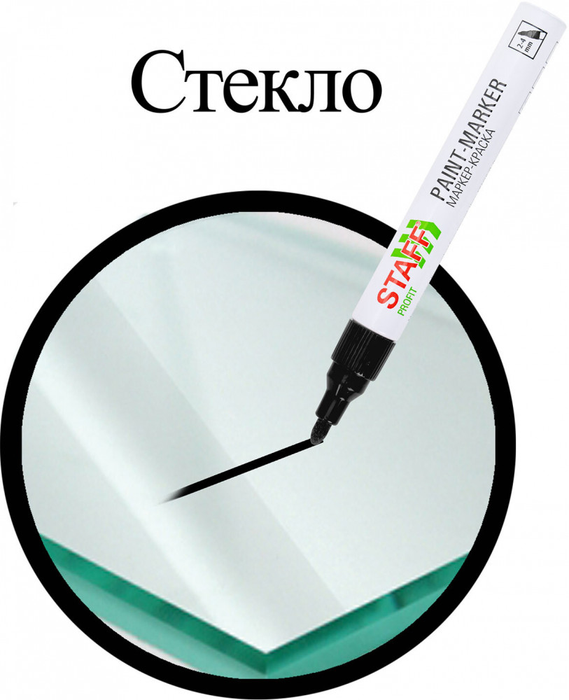Маркер-краска лаковый Staff Profit предназначен для маркировки различных поверхностей: бетон, дерево, стекло, металл, резина, пластик. Подходит для использования как в промышленных, так и в бытовых целях. Высококачественные чернила с лаковым эффектом идеально подходят для нанесения долговечной маркировки на любые поверхности. Благодаря усиленной формуле чернил краска ложится ровным слоем, полностью закрашивая поверхность. С помощью круглого прочного наконечника, выполненного из пористого акрила с шириной линии письма 2-4 мм, можно легко наносить широкие линии равномерным и однородным слоем. Быстросохнущие чернила предотвращают смазывание в процессе маркировки. После высыхания надписи становятся термо- и водостойкими, а также устойчивыми к выцветанию и механическому истиранию. Отлично подходит для маскировки бытовых дефектов, таких как царапины и сколы. Надежный помповый механизм подачи чернил предотвращает вытекание и разбрызгивание в процессе использования, а также преждевременное высыхание.