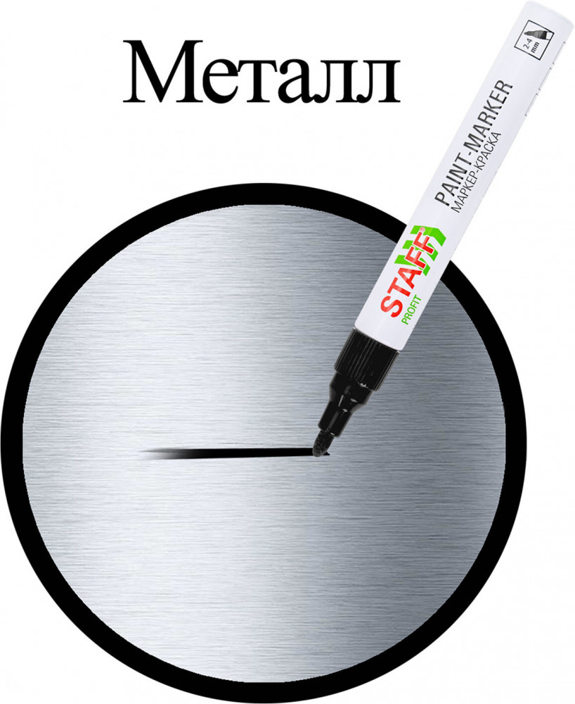 Корпус маркера выполнен из алюминия, внутри находятся 2 металлических шарика для взбалтывания краски. Цвет колпачка соответствует цвету чернил. Это товар эконом-сегмента, поэтому он отличается привлекательной ценой. Товар обладает базовым набором характеристик и простой упаковкой, при этом полностью соответствует основным требованиям потребителей. Маркер-краска лаковый Staff Profit — незаменимый помощник для нанесения пометок на разные типы поверхностей. Выгодная цена, практичность и универсальность — приобретайте маркер-краску Staff Profit и оцените его надежность и удобство использования!