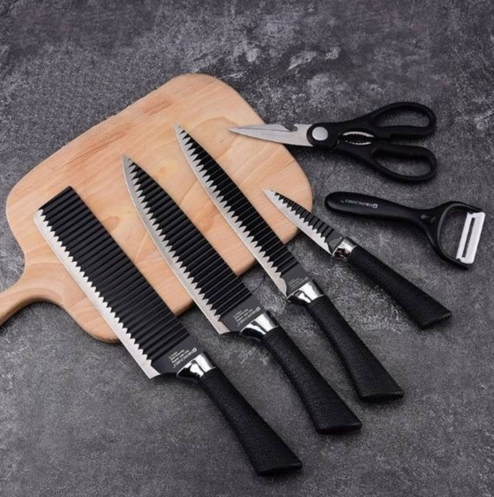 💳 Оплатить за товар можно при получении 🇰🇿 Есть бесплатная доставка по Казахстану от 1 дня 🎁 Копите бонусы с каждой покупки Набор ножей 6 предметов, нержавеющая сталь, черный. Функциональный кухонный набор из 6 предметов — всё необходимое для удобного и быстрого приготовления пищи. |
