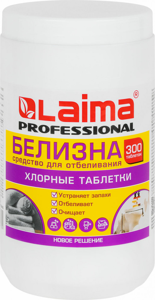 Белизна в таблетках — это удобное средство на основе хлора. Предназначено для отбеливания, дезинфекции и уборки. Имеет широкую область применения и высокую эффективность обеззараживания. Средство представляет собой быстрорастворимые таблетки белого цвета с запахом хлора массой 3,2-3,5 г. Количество в упаковке — 300 таблеток. Возможно отклонение от номинального количества: ± 1,5% по ГОСТ 8.579-2002.