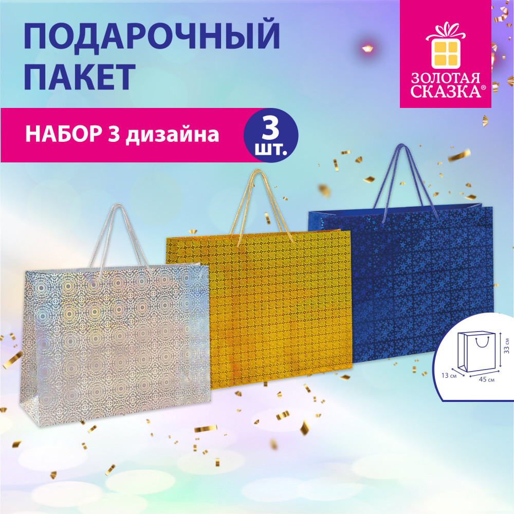 Золотая сказка Набор пакетов подарочных-30% +16