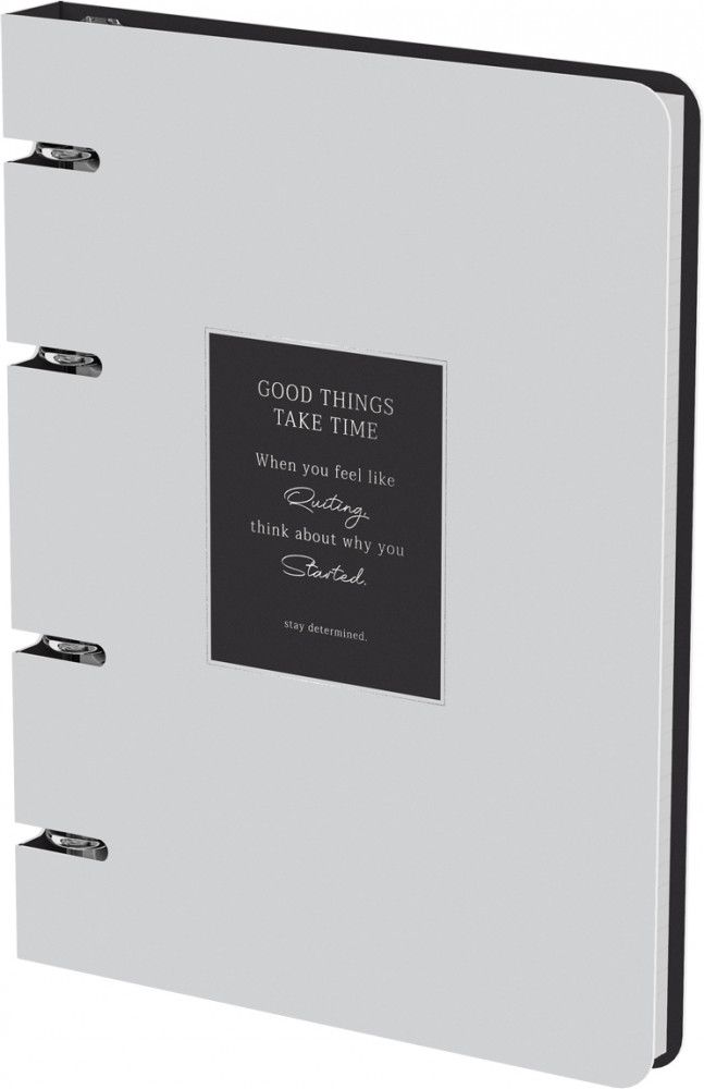 BG Тетрадь на кольцах «Минимализм»В данный момент этот товар отсутствует в продаже. Возможно, у нас найдется аналогичный или похожий товар здесь. Тетрадь на кольцах BG «Минимализм» формата А5 подходит для большого объёма записей. Эффектный дизайн обложки и форзаца поднимет настроение на учёбе или работе. Размер — 160×212 мм. Внутренний блок состоит из 120 белых листов с линовкой в клетку. Плотность офсетной бумаги — 60-65 г/м2. Белизна — 100%. Механизм из 4 колец обеспечивает быструю смену или добавление листов при необходимости. Обложка сделана из плотного картона, который надёжно защищает внутренний блок. Отделка обложки — матовая ламинация, тиснение фольгой. Тетрадь упакована в картон и индивидуальный пакет. |