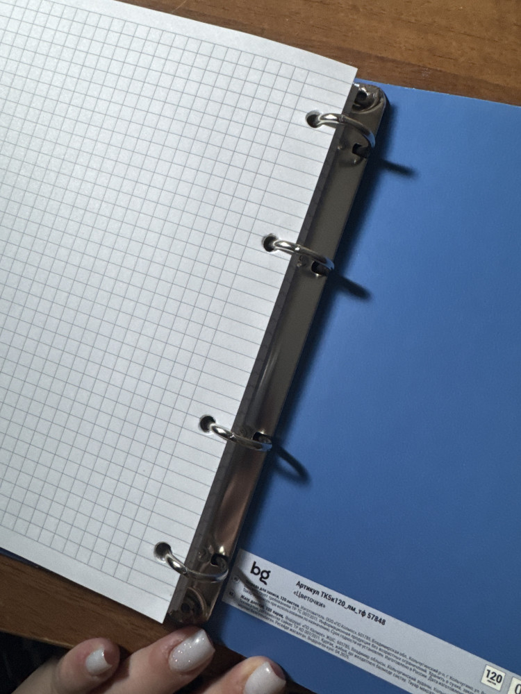 💳 Оплатить за товар можно при получении 🇰🇿 Есть бесплатная доставка по Казахстану от 1 дня 🎁 Копите бонусы с каждой покупки Тетрадь на кольцах BG «Цветочки» формата А5 подходит для большого объёма записей. Эффектный дизайн обложки и форзаца поднимет настроение на учёбе или работе. Размер — 160×212 мм. Внутренний блок состоит из 120 белых листов с линовкой в клетку. Плотность офсетной бумаги — 60-65 г/м2. Белизна — 100%. Механизм из 4 колец обеспечивает быструю смену или добавление листов при необходимости. Обложка сделана из плотного картона, который надёжно защищает внутренний блок. Отделка обложки — матовая ламинация, тиснение фольгой. Тетрадь упакована в картон и индивидуальный пакет. |