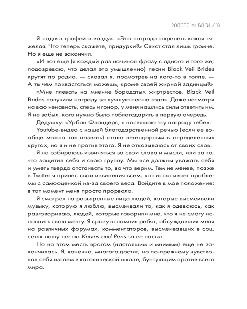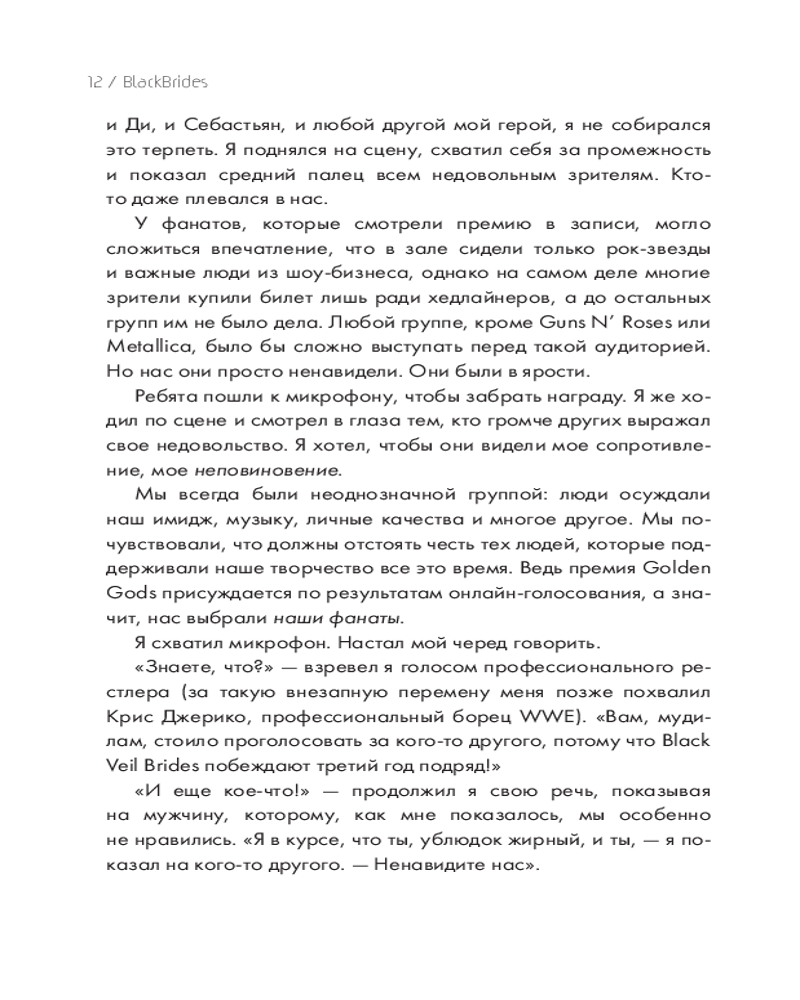 💳 Оплатить за товар можно при получении 🇰🇿 Есть бесплатная доставка по Казахстану от 1 дня 🎁 Копите бонусы с каждой покупки Серия: Иконы мировой музыки: жизнь по ту сторону сцены От основателя группы «Black Veil Brides», чьи песни «In The End» и «Knives and Pens» вы точно слышали, а внешность невозможно забыть, — непокорный эмо-бой и тамблер-икона, на концертах которого собираются миллионы. Будучи шестилетним ребенком, он уже давал интервью родителям, заявляя о славе, пока наконец не достиг ее в реальности. Но какие психологические испытания подстерегали юношу и с какой горькой правдой он столкнулся в Голливуде, перебравшись туда в 18-летнем возрасте? Красочное и философское повествование музыканта о нелегком пути к мечте — никакого монотонного пересказа событий. |