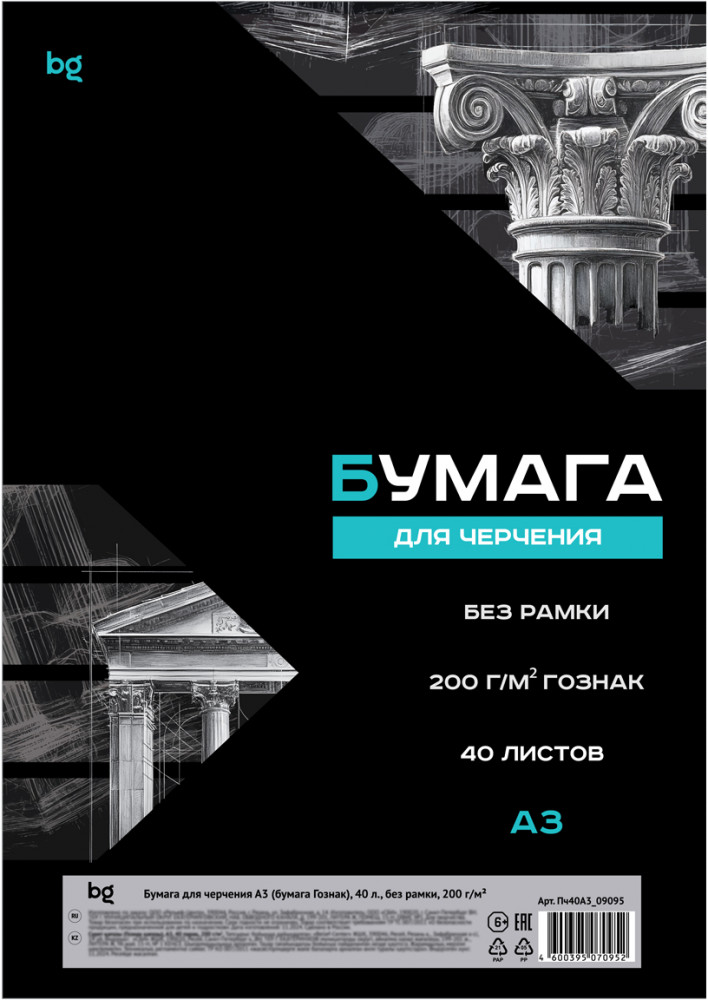 BG Папка для черченияВ данный момент этот товар отсутствует в продаже. Возможно, у нас найдется аналогичный или похожий товар здесь. Бумага для черчения bg — идеальный выбор для художников—профессионалов и любителей. Изделие формата А3 подходит для графических и чертёжных работ чернографитными карандашами и тушью. На бумаге плотностью 200 г/м² линии получаются чёткими. В папке — 40 листов без рамки. Их можно использовать для различных творческих и профессиональных задач. Листы не мнутся и не повреждаются благодаря коробу из качественного микрогофрокартона, который защищает бумагу при транспортировке. Чертёжная бумага марки Б изготовлена по стандартам Краснокамского ГОЗНАК. |