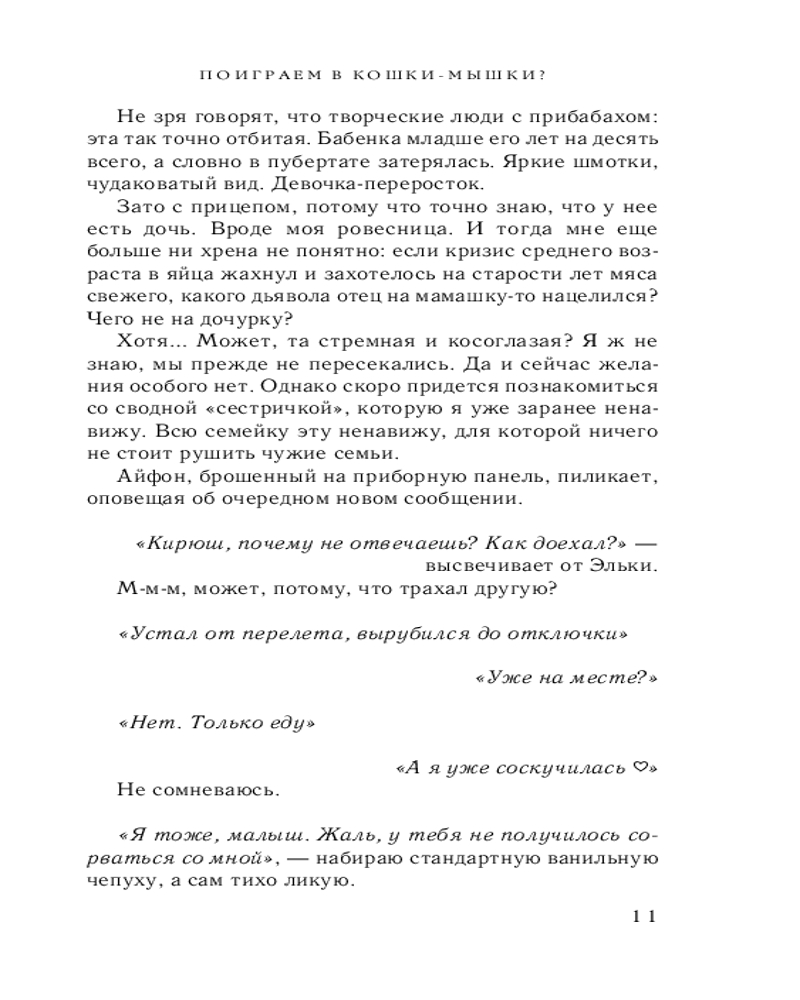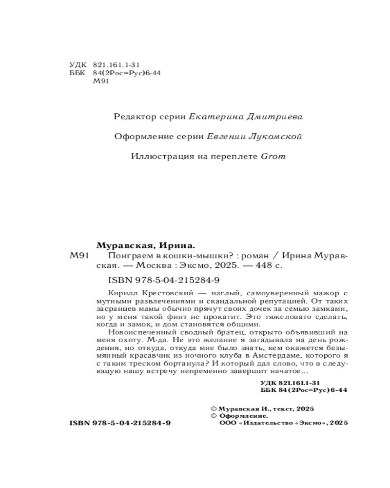 💳 Оплатить за товар можно при получении 🇰🇿 Есть бесплатная доставка по Казахстану от 1 дня 🎁 Копите бонусы с каждой покупки Серия: Пижамная вечеринка Кирилл Крестовский — наглый, самоуверенный мажор с мутными развлечениями и скандальной репутацией. От таких засранцев мамы обычно прячут своих дочек за семью замками, но у меня такой финт не прокатит. Это тяжеловато сделать, когда и замок, и дом становятся общими. Новоиспеченный сводный братец, открыто объявивший на меня охоту. Мда. Не это желание я загадывала на день рождения, но откуда, откуда мне было знать, кем окажется безымянный красавчик из ночного клуба в Амстердаме, которого я с таким треском бортанула? И который дал слово, что в следующую нашу встречу непременно завершит начатое... |