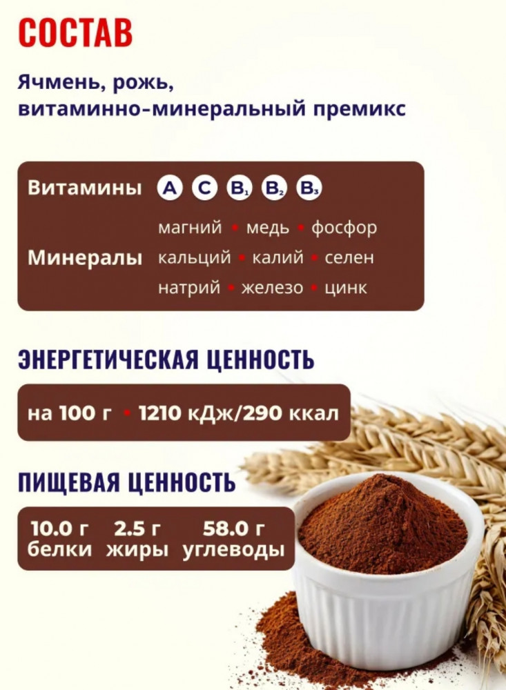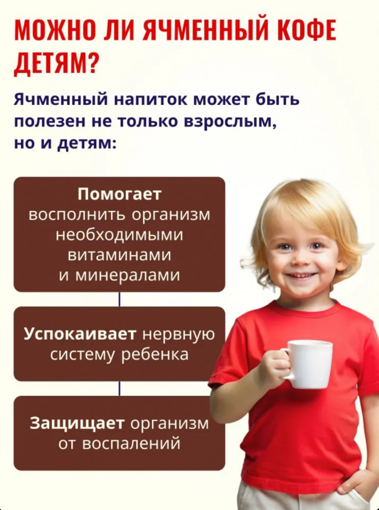 Не понравился вкус. На любителя. В детстве пили вкусный ячменный кофе. Надеялась хотя бы на малейший намёк на "вкус детства". Но нет, вообще не поняла вкуса.