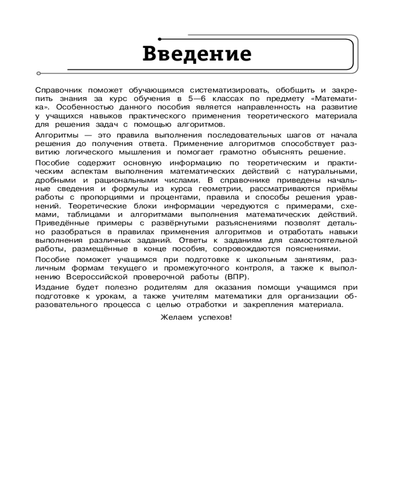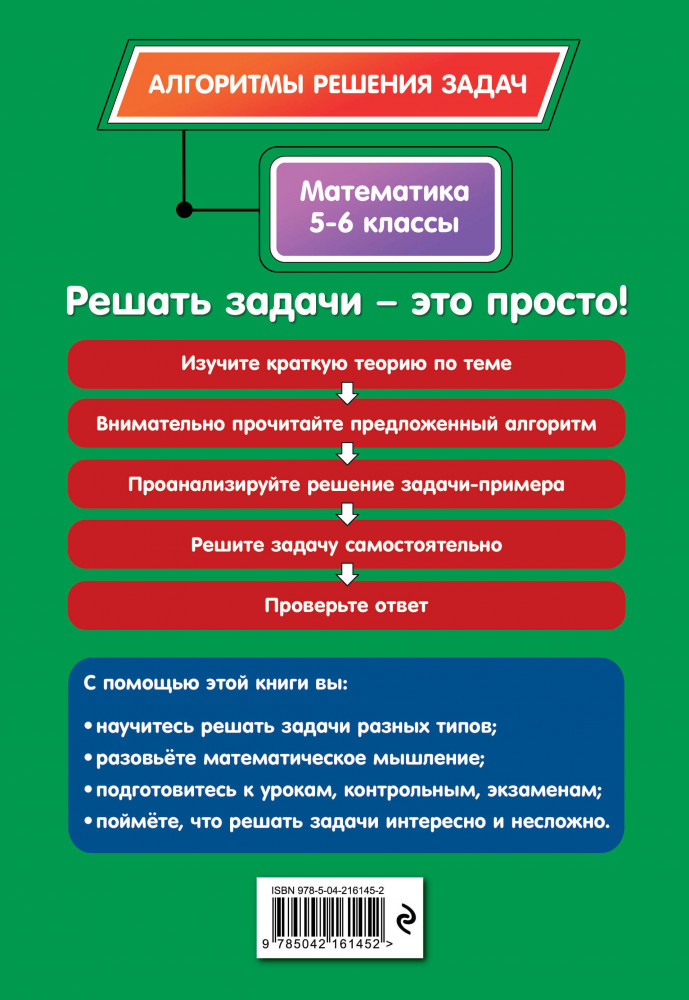 💳 Оплатить за товар можно при получении 🇰🇿 Есть бесплатная доставка по Казахстану от 1 дня 🎁 Копите бонусы с каждой покупки Серия: Алгоритмы решения задач (обложка) Надоело искать в учебниках нужную информацию в море формул и теорем? Вас спасет книга, в которой изложены алгоритмы решения типовых задач по математике, изучаемых в 5 и 6 классах. Перед алгоритмом приводится только важная теория по теме с необходимыми правилами и формулами. Сам алгоритм поделен на четкие шаги, следуя которым можно справиться с любой задачей по математике. После алгоритма расположены пример решения типовой задачи, а также задания для самостоятельного выполнения. Такой подход к занятиям поможет быстро выработать навык уверенного решения любых типов задач на уроках и контрольных. Родители с помощью этого школьного справочника смогут оказать поддержку детям и вместе разобраться в домашних заданиях. |