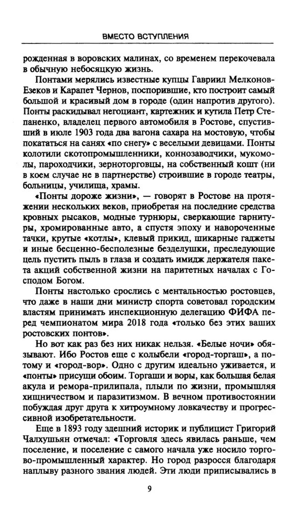 Ростов-папа. История воровской столицы России. Конец XVIII — начало XX векаВ данный момент этот товар отсутствует в продаже. Возможно, у нас найдется аналогичный или похожий товар здесь. В книге в доступной форме изложена история зарождения, формирования и созревания криминального феномена под названием «Ростов-папа» — воровской столицы юга России. В книге впервые в отечественной историографии показана история преступности не с точки зрения борцов с ней, а, что называется, «с другой стороны баррикад». Проанализированы причины, исторические истоки и пути создания одного из крупнейших российских криминальных сообществ. Представлены основные уголовные специализации «столицы» и их виднейшие представители. Показан путь, который прошло преступное сообщество юга России от мелких разбойничьих шаек конца XVIII века до образования «воровского закона» и устойчивых организованных преступных группировок 30-х годов XX века. |