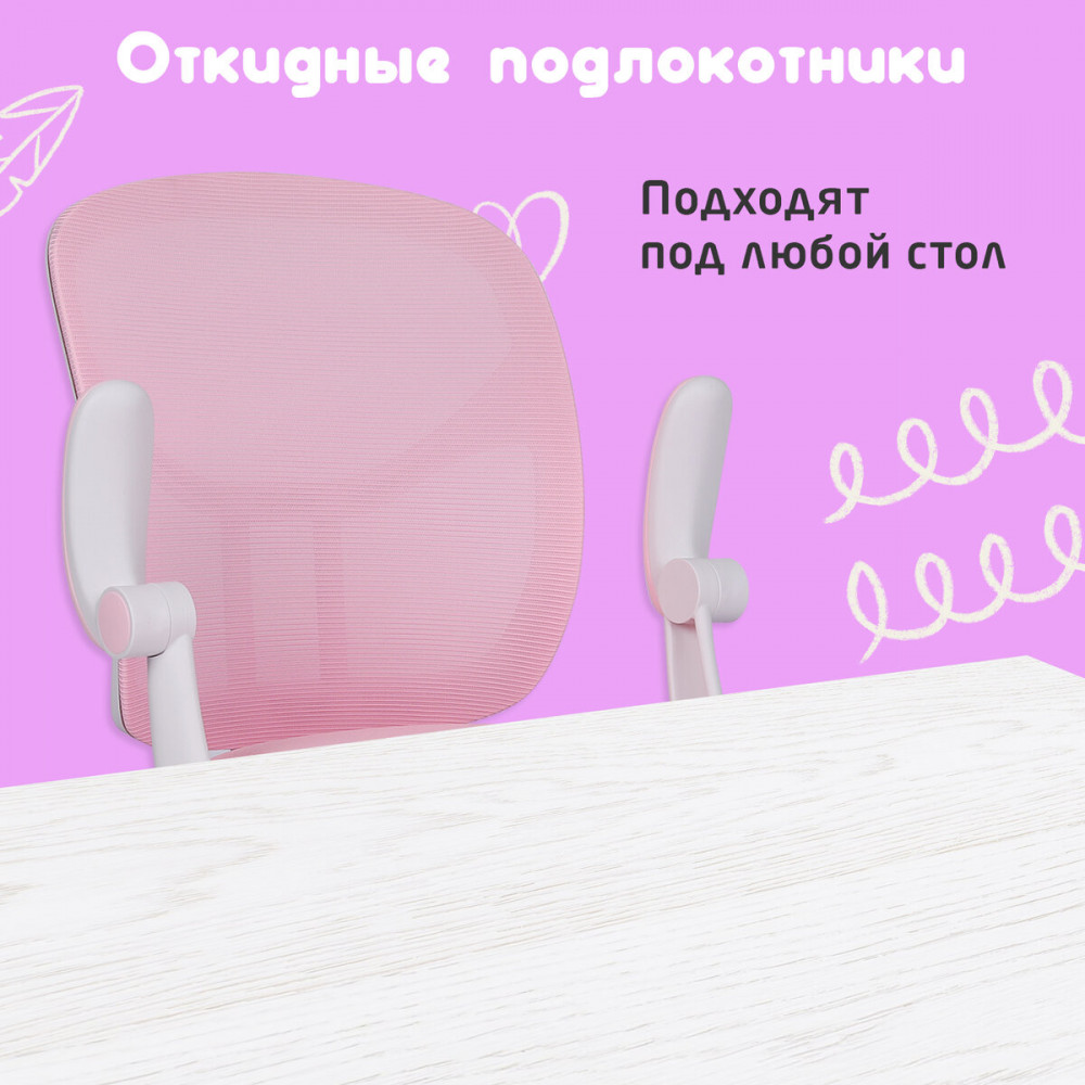 Обивка кресла выполнена из износостойкой прочной сетки на спинке и мягкой, надёжной ткани TW на сиденье. Такая ткань не только долговечна, но и легко чистится, хорошо пропускает воздух. Наполнитель сиденья — высококачественный поролон, который даже при активном использовании долго сохраняет форму и остаётся упругим. Спинка анатомической формы обеспечивает поддержку поясницы и способствует формированию правильной осанки. Подлокотники при необходимости можно откинуть вверх, чтобы они не ограничивали движения. Кроме того, подставку для ног можно отрегулировать под рост пользователя или вовсе убрать. Таким образом, кресло будет расти вместе с ребенком!