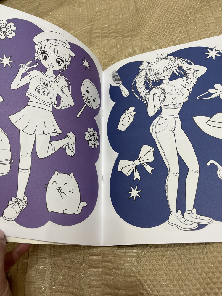 Три совы Аниме. Модный показ. Раскраска с цветным фоном-25% +4