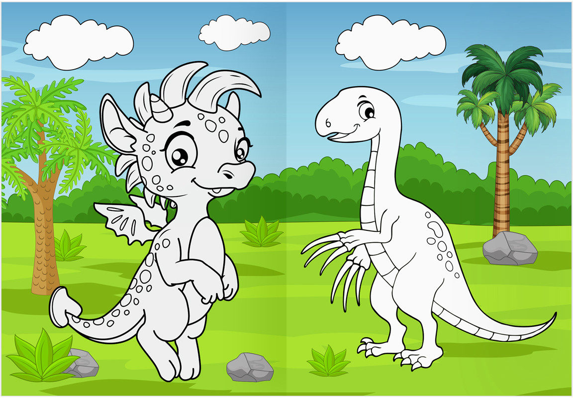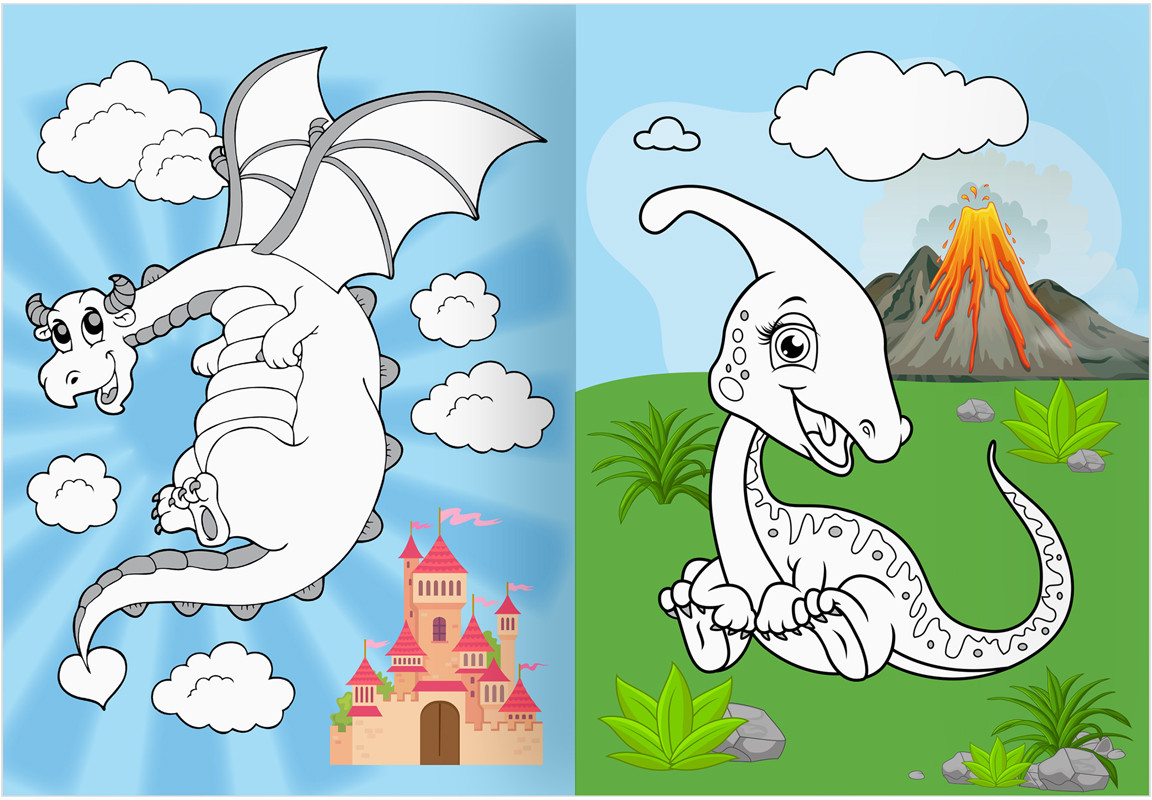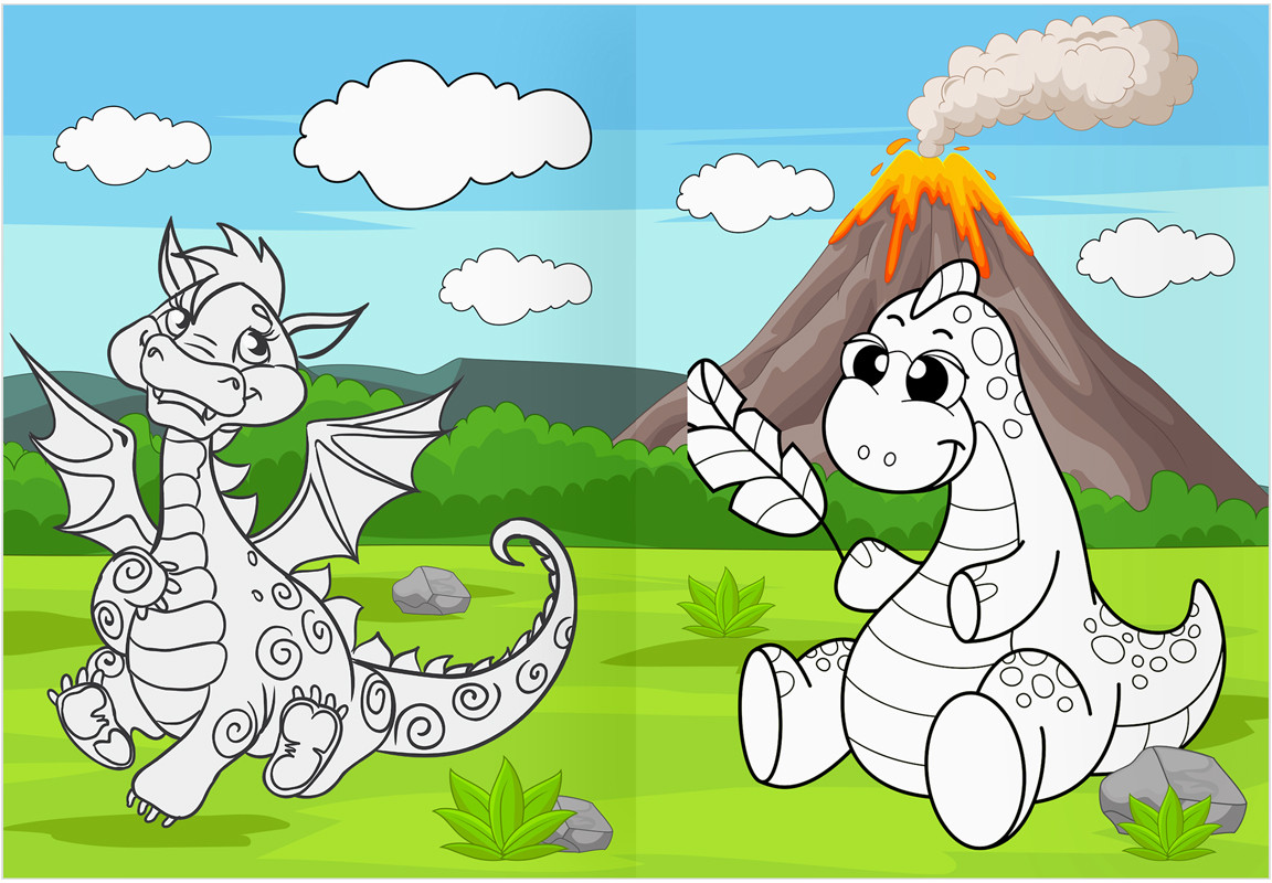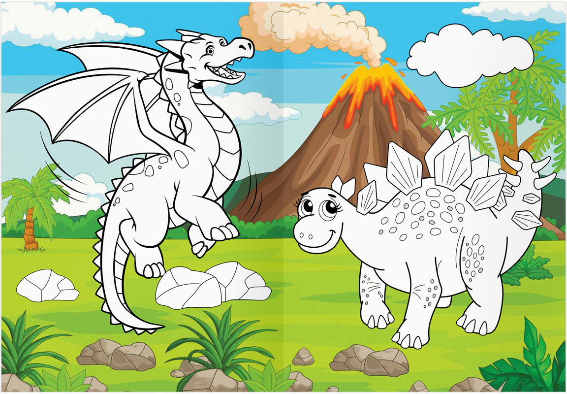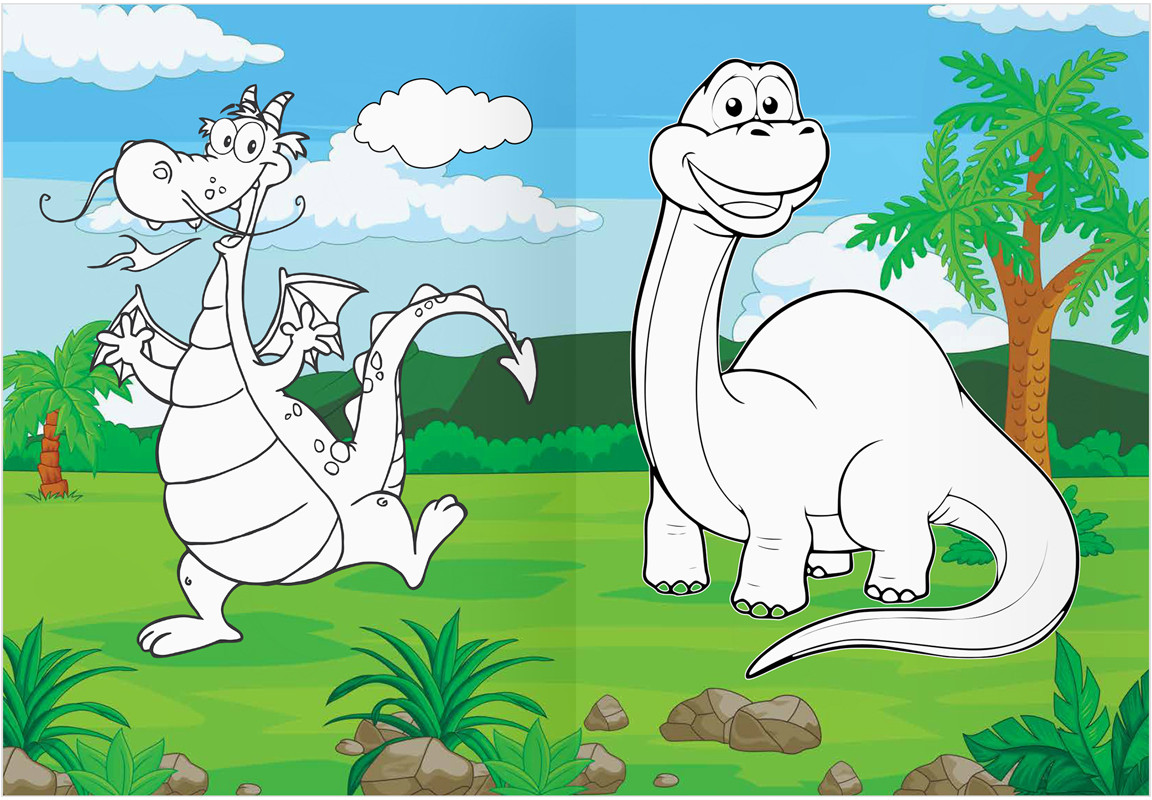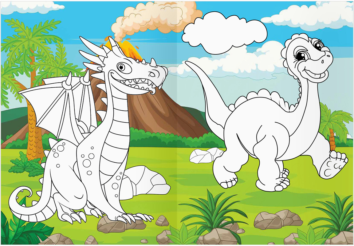 Три совы Динозавры и драконы. Раскраска с цветным фоном-30% +16
