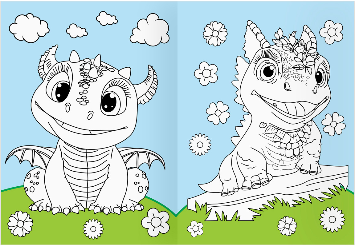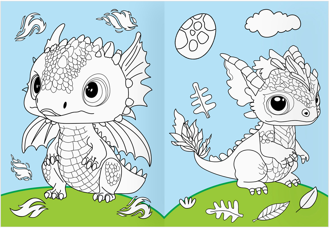 Три совы Дракончики. Раскраска с цветным фоном-20% +5