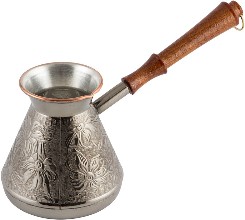 💳 Оплатить за товар можно при получении 🇰🇿 Есть бесплатная доставка по Казахстану от 1 дня 🎁 Копите бонусы с каждой покупки Турка изготовлена из высококачественной меди марки М1М, внешняя поверхность покрыта декоративным чёрным никелем, внутренняя поверхность — слоем пищевого олова, являющимся безопасным для здоровья. Турка предназначена для приготовления натурального кофе. Медь обладает равномерной теплопроводностью, что позволяет приготовить кофе, отличающийся изысканным ароматом. Узкое горлышко также является положительной характеристикой изделия. Длинная ручка, выполненная из дерева, обеспечивает защиту от ожогов. Подходит для использования на всех типах плит, кроме индукционных. Не подходит для использования в посудомоечной машине. Не допускается нагрев изделия без воды, а также чистка с применением металлических щеток и абразивных моющих средств. |